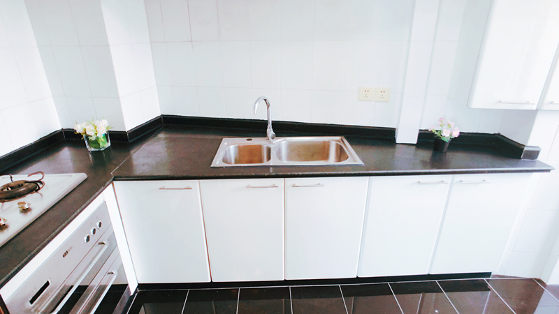 The kitchen is fitted with gas cooking, a must for anyone who appreciates precise heat for both Asian stir-fries and Western recipes. Thoughtful ventilation makes daily cooking pleasant, and the efficient layout keeps everything within easy reach. The serene bedroom comfortably accommodates a queen-sized bed and a compact workstation, ideal for remote work or late-night reading. In the bathroom, a bathtub adds a welcome touch of hotel-style indulgence after a long day.