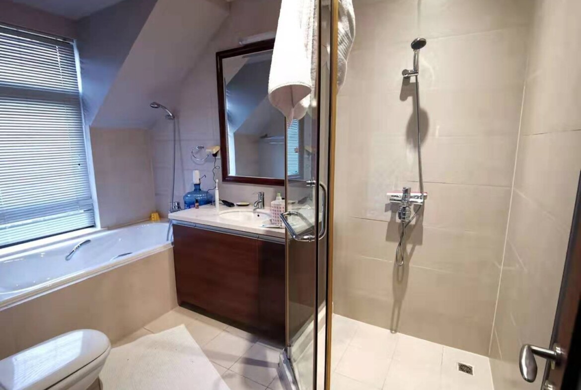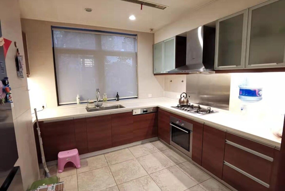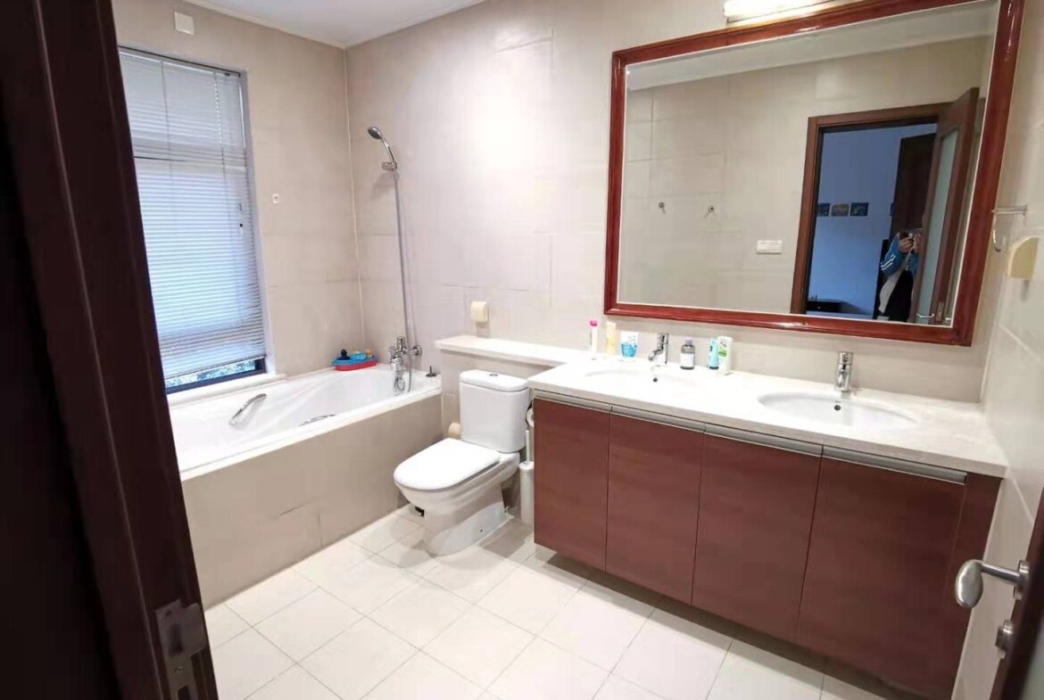 Comfort is assured year-round with central air conditioning and heating, a welcome pairing given Shanghai’s humid summers and crisp winters. The kitchen is designed for practical cooking, with ample storage and counter space, while the bedrooms offer flexible layouts for a home office, children’s rooms, or a quiet guest suite. Bathrooms include a bathtub for evening soaks, a rarity many expats appreciate in the city.