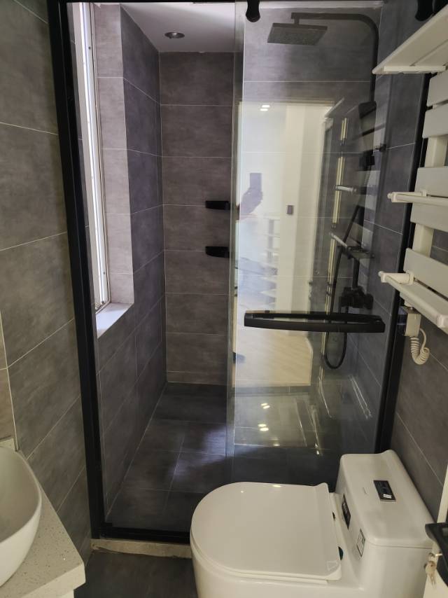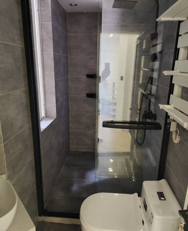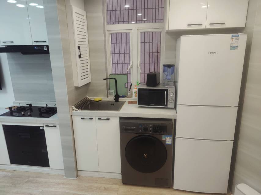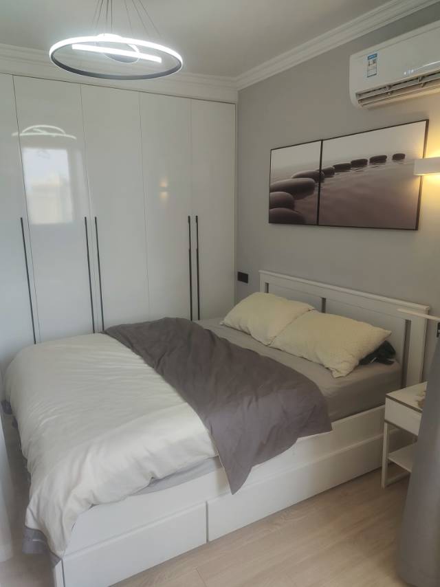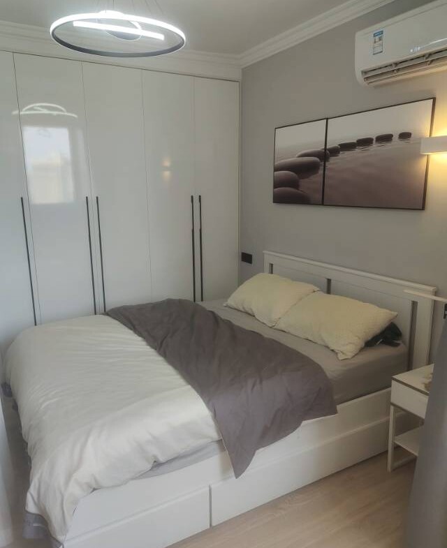 Comfort is covered year-round with heating for cooler months and air conditioning for Shanghai’s summers. The efficient kitchen is designed for real life, with smart storage and full-size appliances that make weeknight cooking straightforward. A well-appointed bathroom features a walk-in shower and contemporary fittings, while the bedroom offers quiet respite and space for a queen bed plus bedside storage.