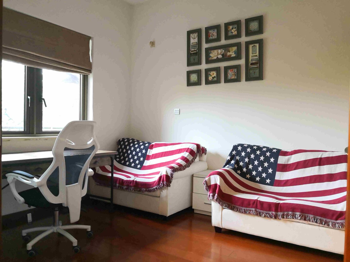 Practical comforts are considered throughout: efficient air conditioning for Shanghai’s summers, heating to keep winters cozy, and reliable WiFi connectivity for streaming and remote work. Storage has been thoughtfully integrated, from built-ins to utility space, so the home stays tidy without effort. The layout supports everyday living—space where it matters, clean lines, and a soothing palette that pairs well with both minimalist and eclectic furnishings.
