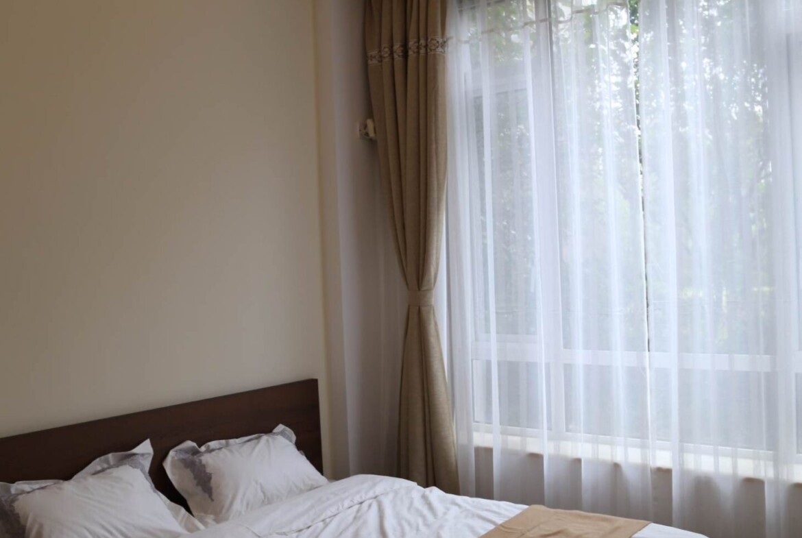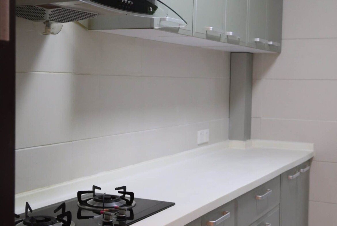 This fully furnished two-bedroom, two-bath residence at Mandarine de Gubei pairs modern city living with a rare touch of greenery—a private, low-maintenance garden ideal for morning coffee, a quiet read, or alfresco dinners. The open-plan living and dining area is designed for both relaxation and entertaining, with generous wall space for art and large windows drawing in natural light.