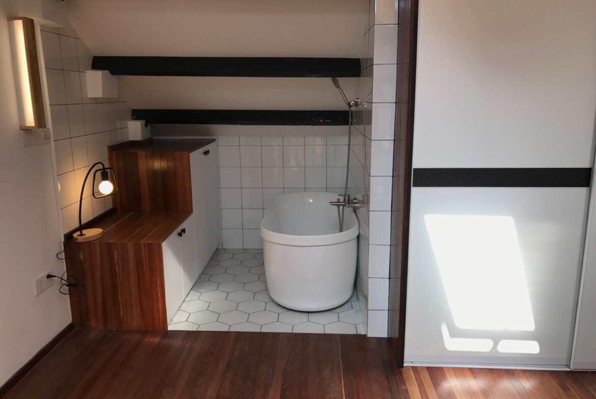 Character with efficiency: The mezzanine studio layout creates two livable zones in a compact footprint. Use the loft for sleeping and keep the ground floor open for hosting, working, or quietly unwinding after a long day.
