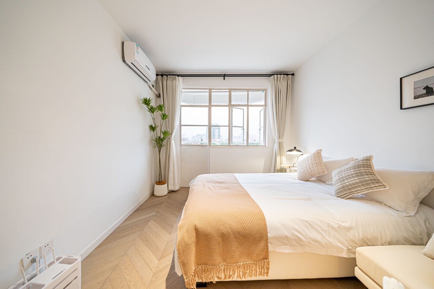 Air conditioning ensures year-round comfort amid Shanghai’s humid summers and crisp winters, allowing you to customize your indoor climate effortlessly. Whether you’re unwinding after a busy day or entertaining guests, the balcony extends your living space outdoors, offering a rare private nook in the heart of the city.