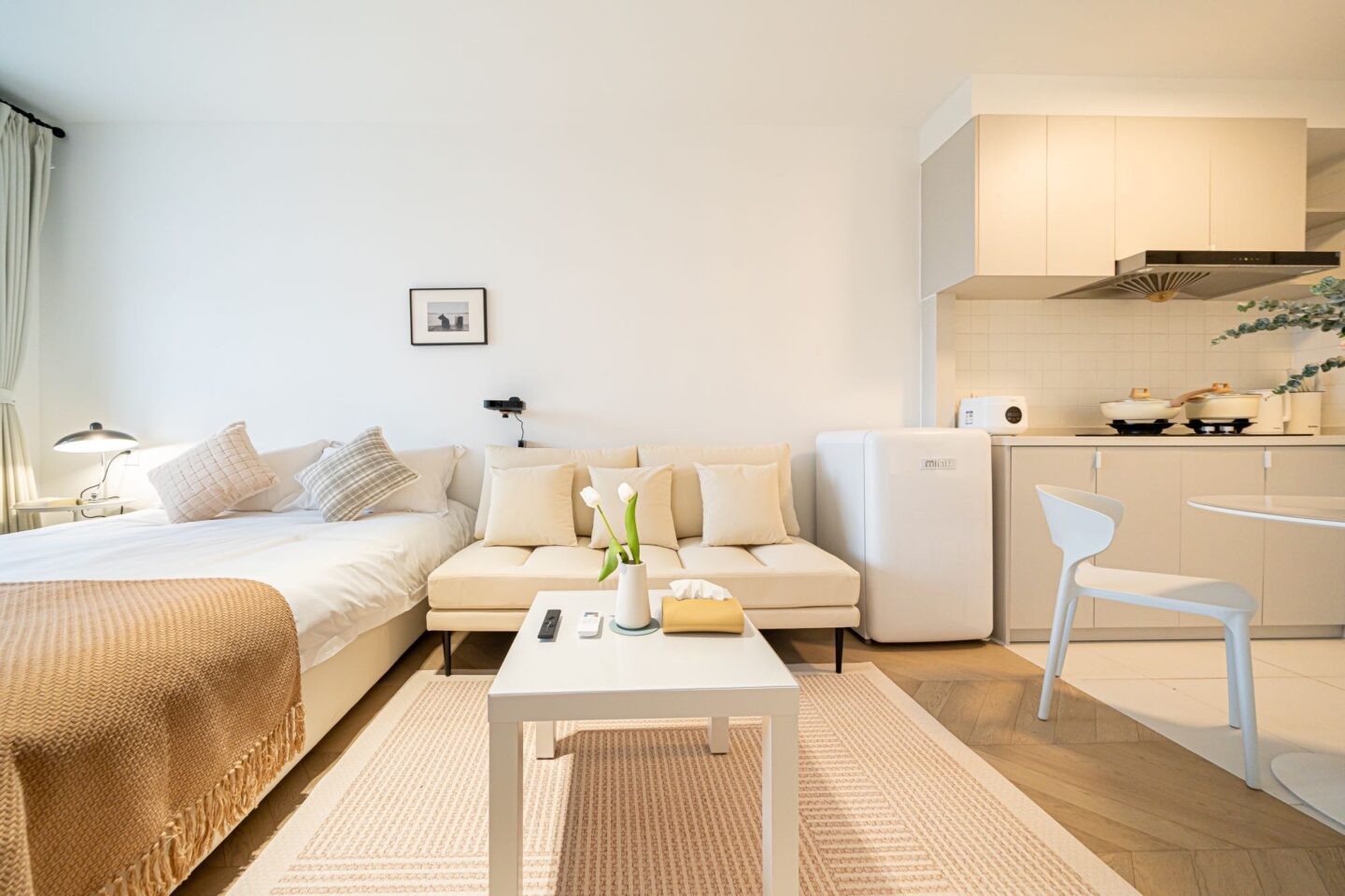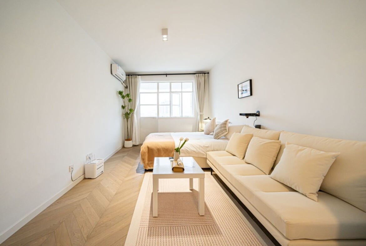 Ideal for singles or couples, this studio-style apartment provides a harmonious balance between open-concept living and distinct bedroom privacy, making it a versatile home base for your Shanghai adventures.