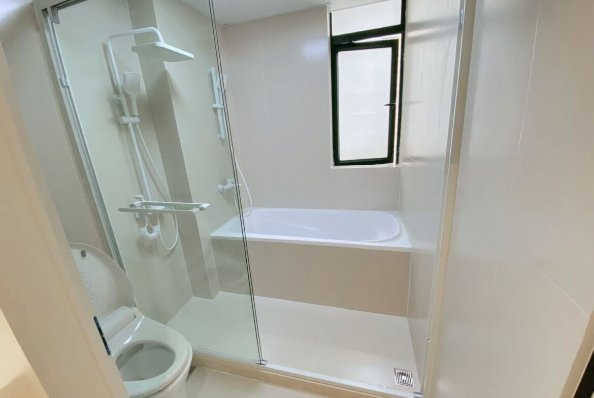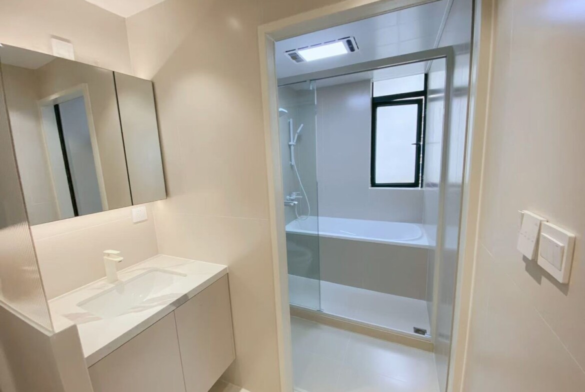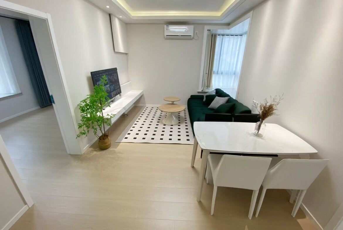 The apartment has been fully renovated to meet contemporary living standards, featuring pristine finishes and a harmonious layout that maximizes every square meter. The inclusion of a bathtub adds a touch of luxury, perfect for relaxing after a busy day in Shanghai’s dynamic environment. Both air conditioning and heating ensure year-round climate comfort, an essential feature in the city’s humid summers and cool winters.