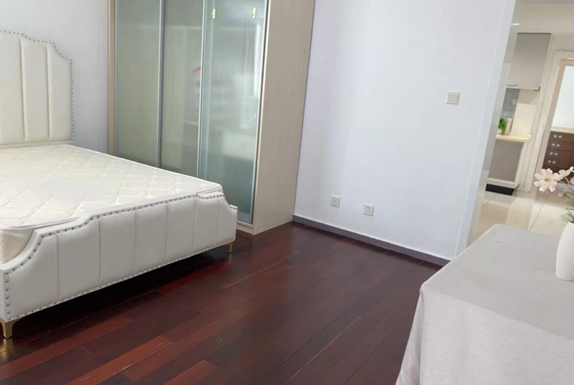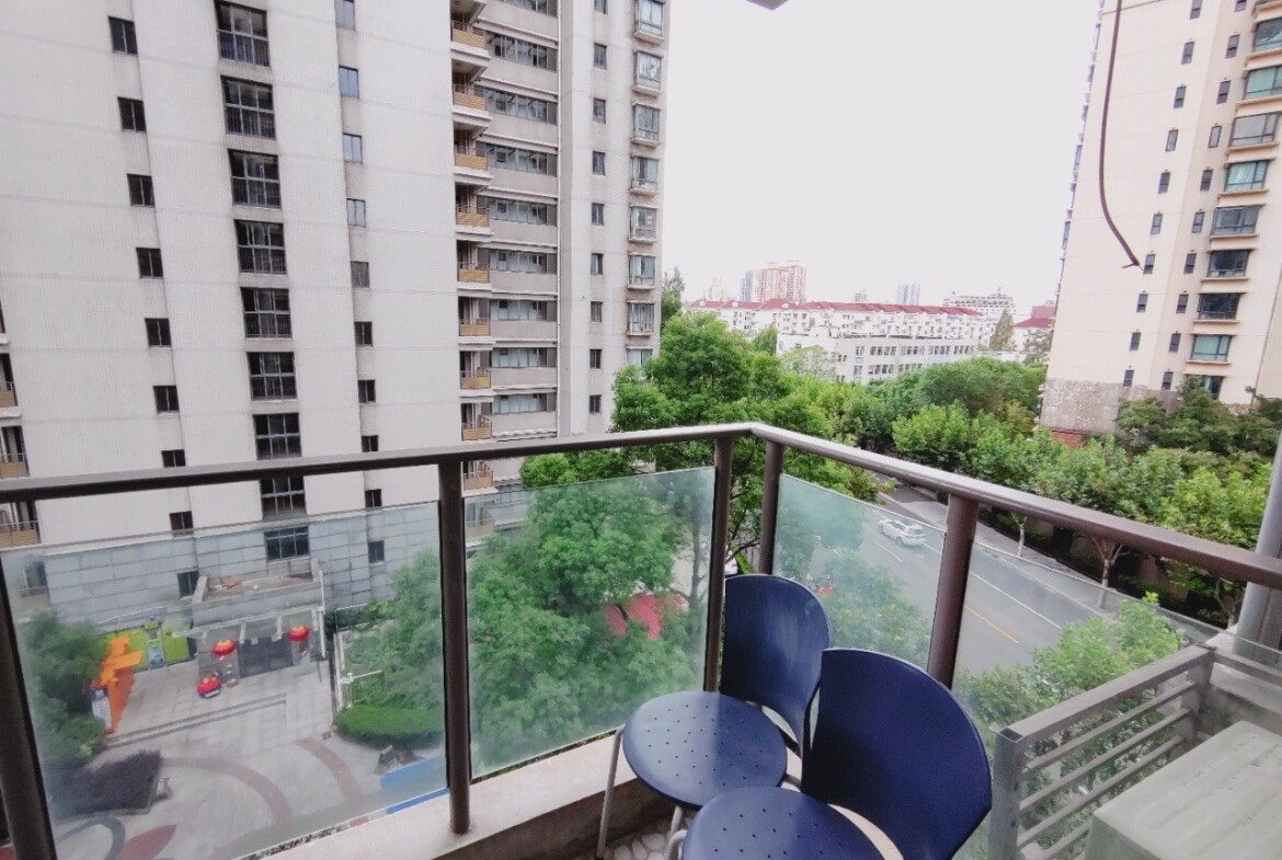 Step into a bright, airy living space featuring air conditioning and central heating, ensuring your comfort throughout Shanghai’s varied seasons. The apartment’s open layout extends onto a private balcony, providing a peaceful outdoor retreat to enjoy morning coffee or unwind after a busy day.
