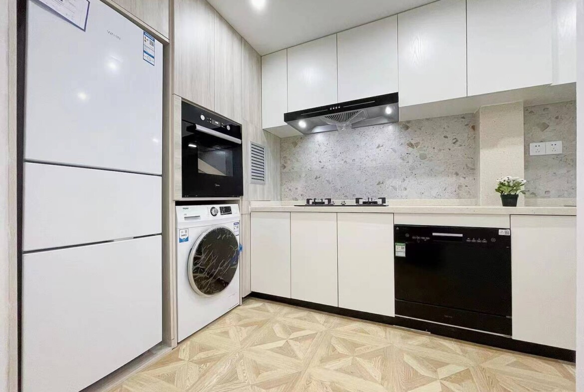 The sleek, open-plan kitchen is designed for efficiency and style, making it easy to prepare meals or entertain friends. Both bedrooms are spacious, offering ample storage and a tranquil retreat from city life. With its smart layout and brand new finishes, this home is ideal for discerning expats seeking a fresh start in a dynamic Shanghai neighborhood.