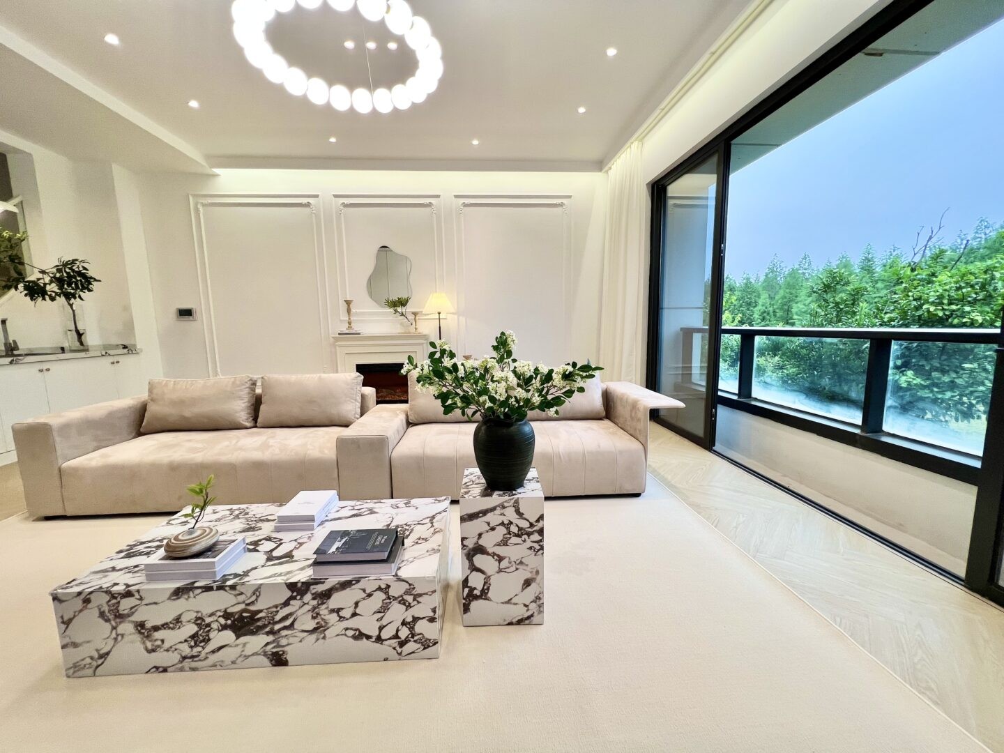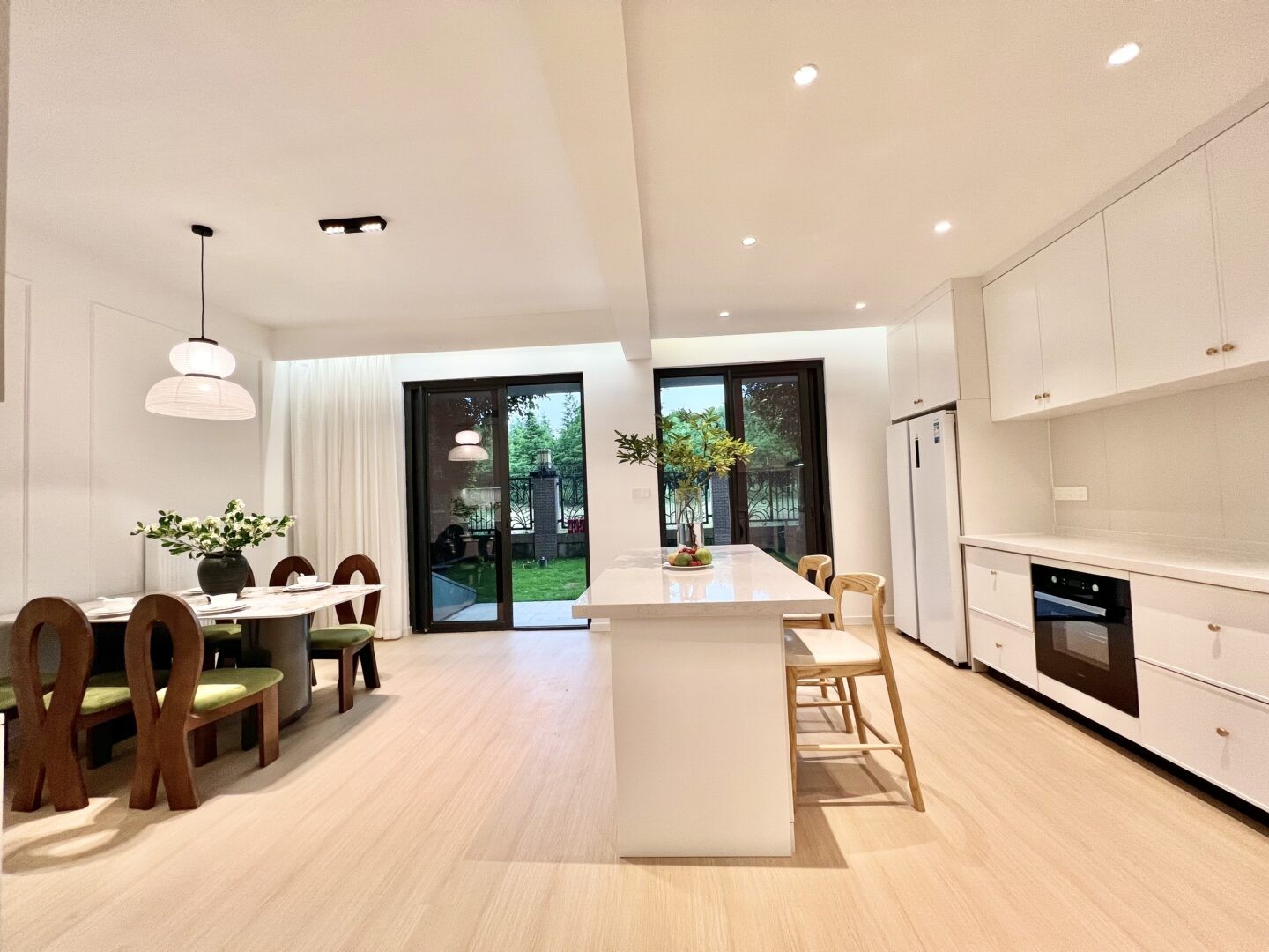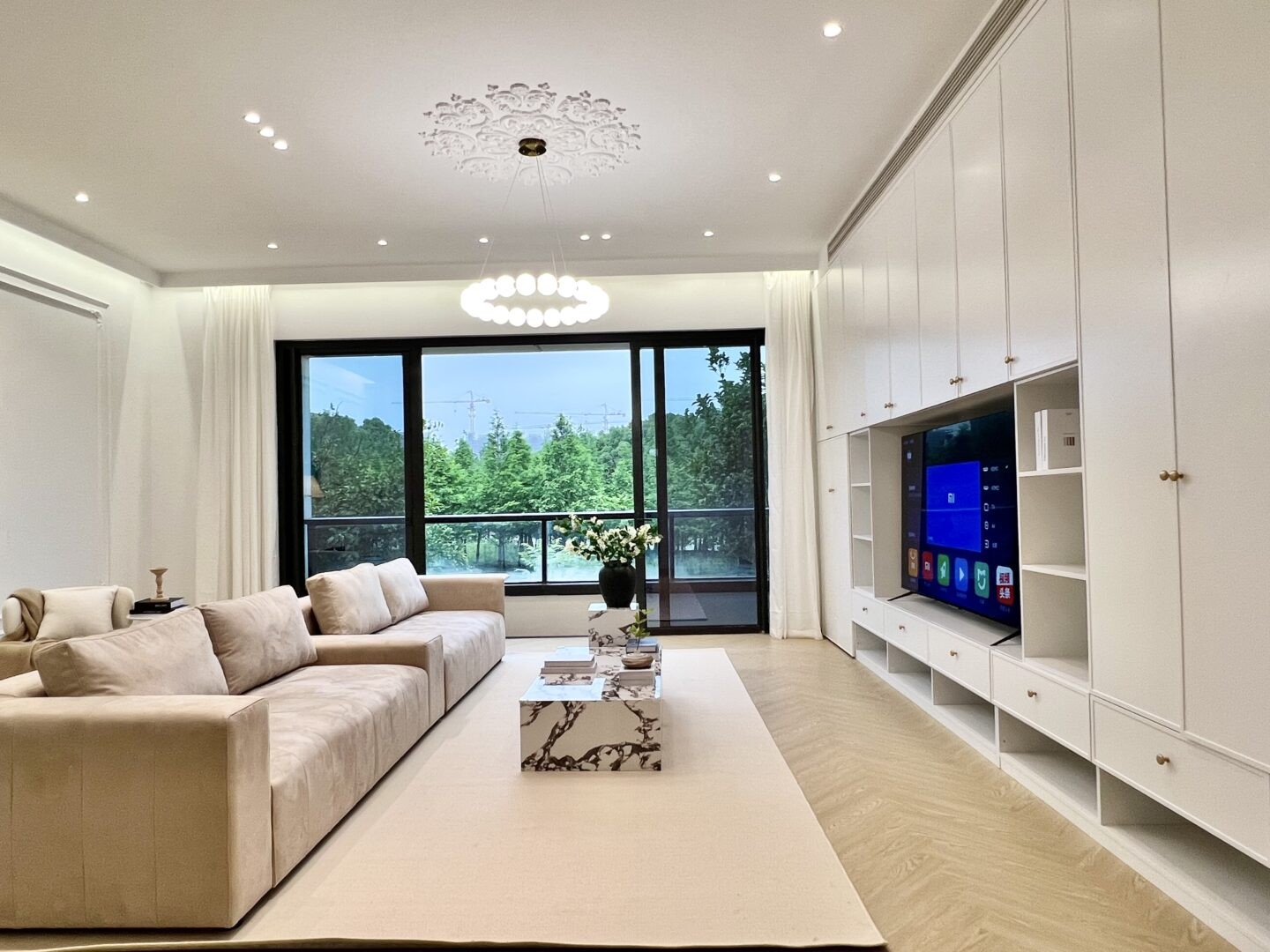 This stunning 4-bedroom, 4-bathroom Shanghai villa for rent in Longwan Garden, Qingpu, offers 400 sqm of modern elegance. The space features a sleek, fully renovated interior with floor-to-ceiling windows that flood the home with natural light. A spacious living area opens onto a private terrace with beautiful garden views. The villa’s layout emphasizes open, airy spaces and seamless indoor-outdoor living. High-end finishes and stylish decor make this an ideal home for those seeking luxury and comfort.