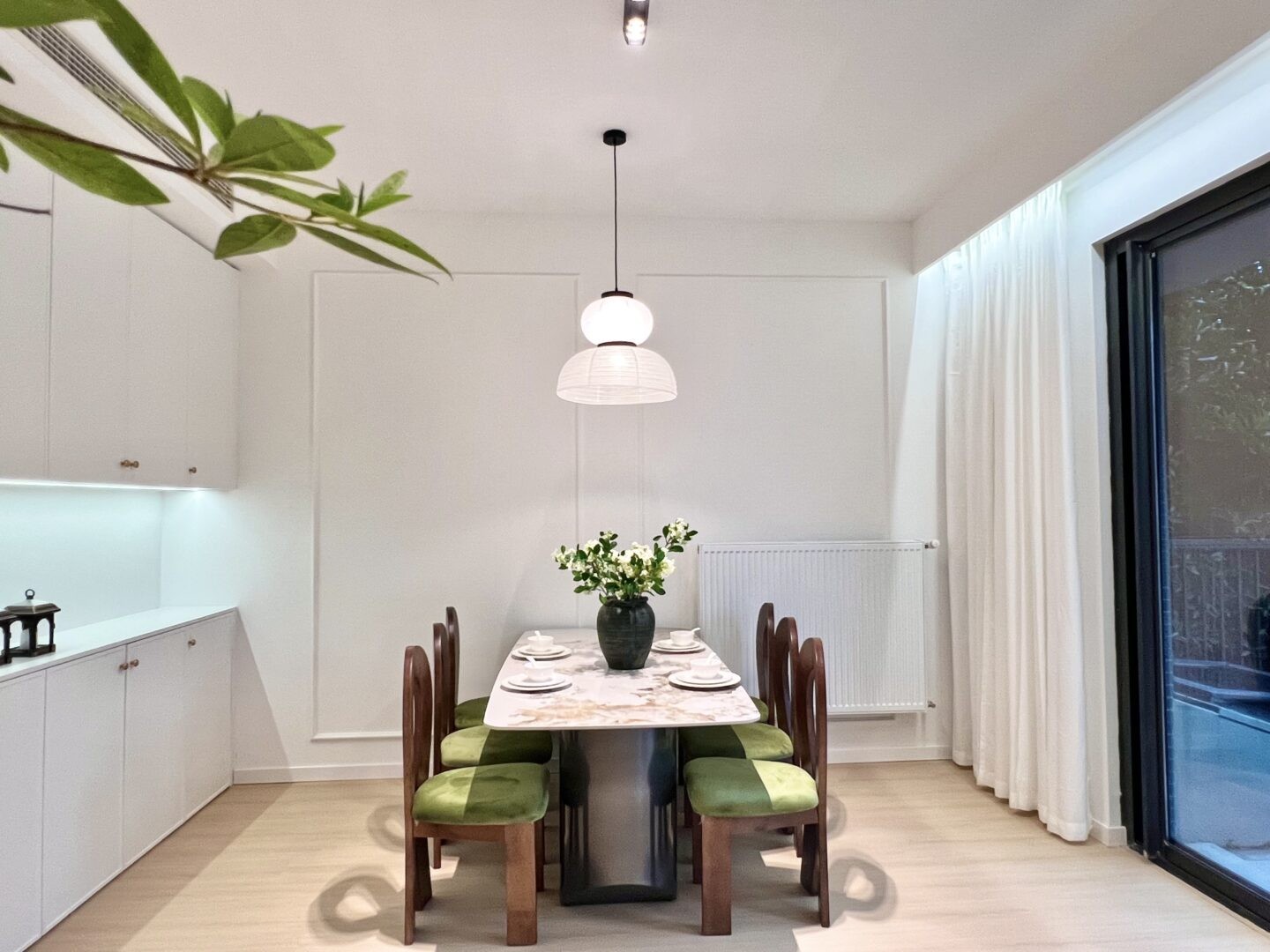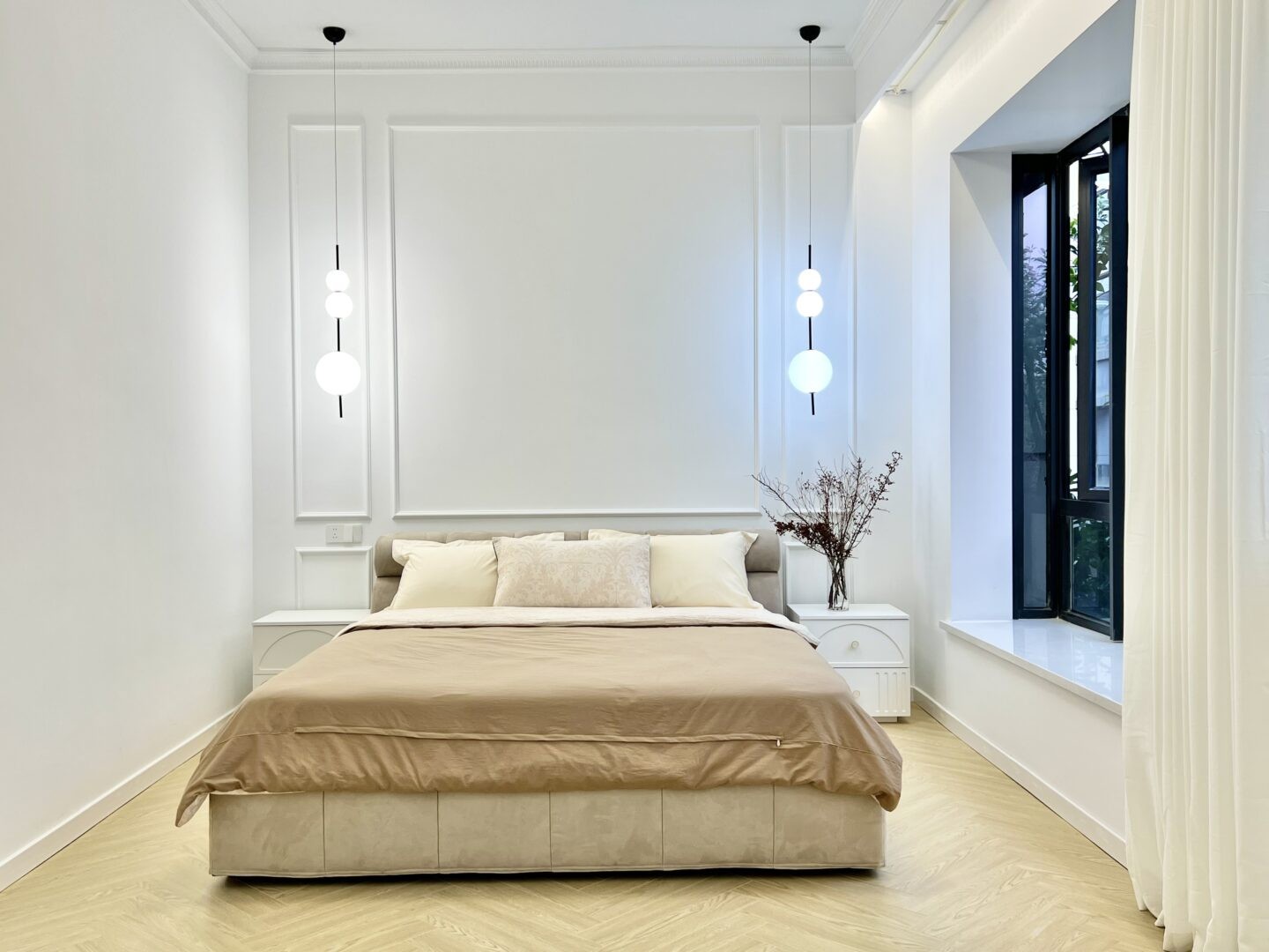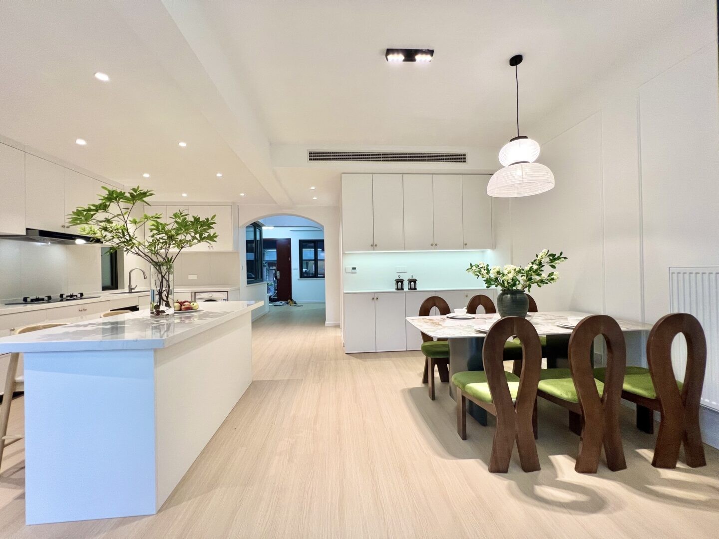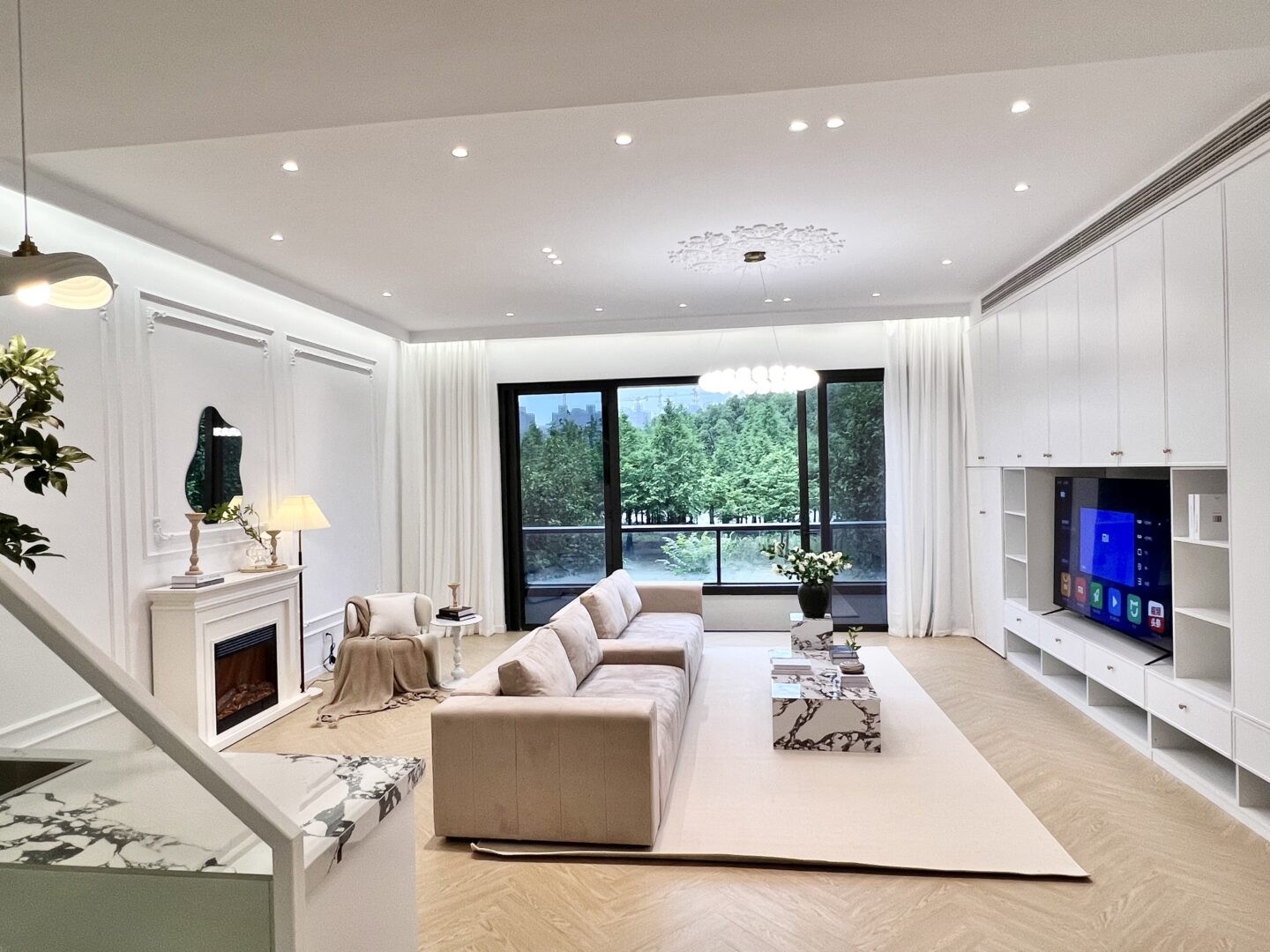 This stunning 4-bedroom, 4-bathroom Shanghai villa for rent in Longwan Garden, Qingpu, offers 400 sqm of modern elegance. The space features a sleek, fully renovated interior with floor-to-ceiling windows that flood the home with natural light. A spacious living area opens onto a private terrace with beautiful garden views. The villa’s layout emphasizes open, airy spaces and seamless indoor-outdoor living. High-end finishes and stylish decor make this an ideal home for those seeking luxury and comfort.