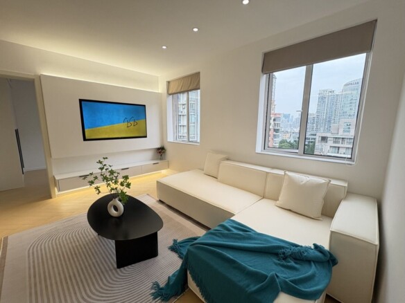 Set near the storied Xinhua Road area, the apartment benefits from one of Changning’s most charming urban landscapes. Plane trees arch over quiet side streets lined with 1930s villas and Art Deco details, creating a walking environment that invites detours. Cafes and bakeries along Yuyuan Road and the lanes off Fahuazhen Road make casual meetups effortless, and the creative compound at Columbia Circle offers galleries, dining, and a tasteful nod to the city’s heritage.
