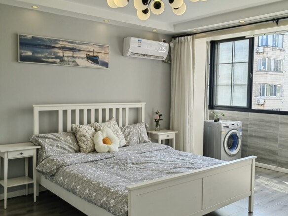 Location and value align neatly here. The apartment at Da’an Changning Apartment sits in a coveted, leafy pocket with quick Metro access, yet it is positioned at an economical level by focusing on what modern renters actually use. Two comfortable bedrooms and no living room keep rent and utility costs sensible without compromising privacy or comfort.