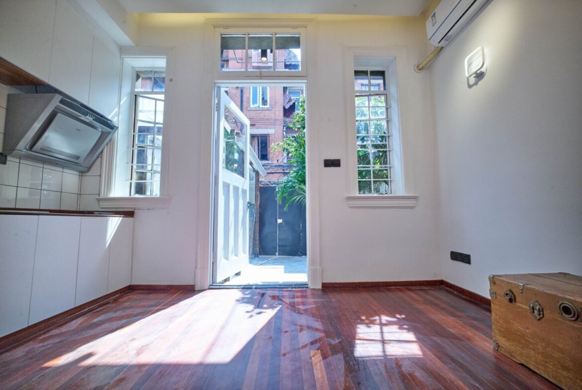 Step into a rare blend of heritage and comfort at this one-bedroom lane house for rent inside Jing’an Villa. Tucked just off West Nanjing Road, the home enjoys a private front yard that sets the tone for tranquil, leafy living right in the heart of the city. The interior has been fully renovated with a thoughtful eye to expat needs, pairing contemporary finishes with the intimacy of a classic Shanghai lilong residence.