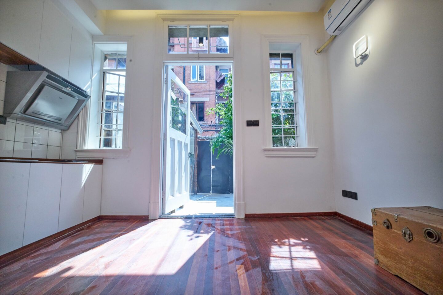 This home inside Jing’an Villa pairs the intimacy of a classic lane house with a full renovation, air conditioning, and a gas-fitted kitchen that makes daily living efficient and comfortable.