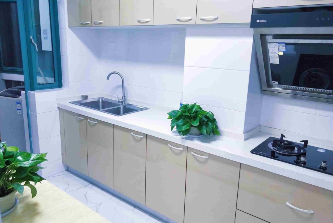 Shanghai winters are mild but can be chilly indoors; the built-in heating ensures consistent warmth during the colder months, a detail international residents appreciate. The kitchen is designed for real cooking, with efficient storage and smooth worktops that make weeknight meals and Sunday batch-prep equally effortless. A neatly tiled bathroom with quality fixtures rounds out the comfort-forward approach.