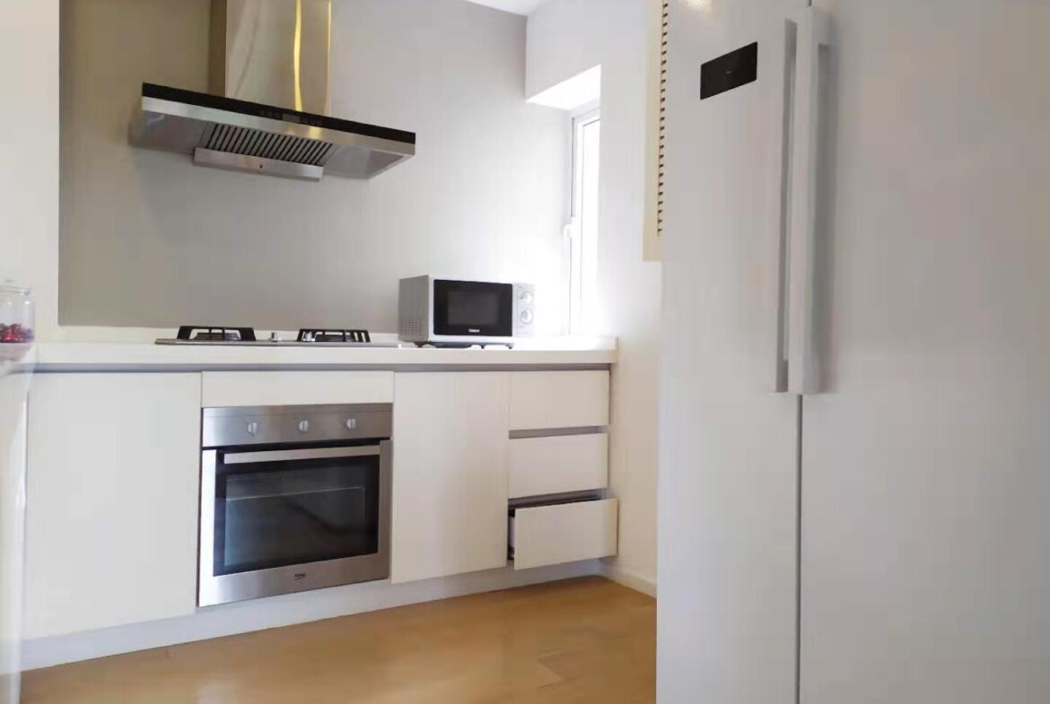 This thoughtfully fully renovated three-bedroom, two-bath apartment in Ambassy Court blends classic tree-lined street charm with modern comfort. A generous open-plan living and dining area welcomes natural light, while the adjacent outdoor space—a private balcony set back from the road—invites morning coffee among the plane trees that make Huaihai Middle Road so loved by expats. The kitchen is streamlined and contemporary, designed for everyday cooking and weekend entertaining alike.