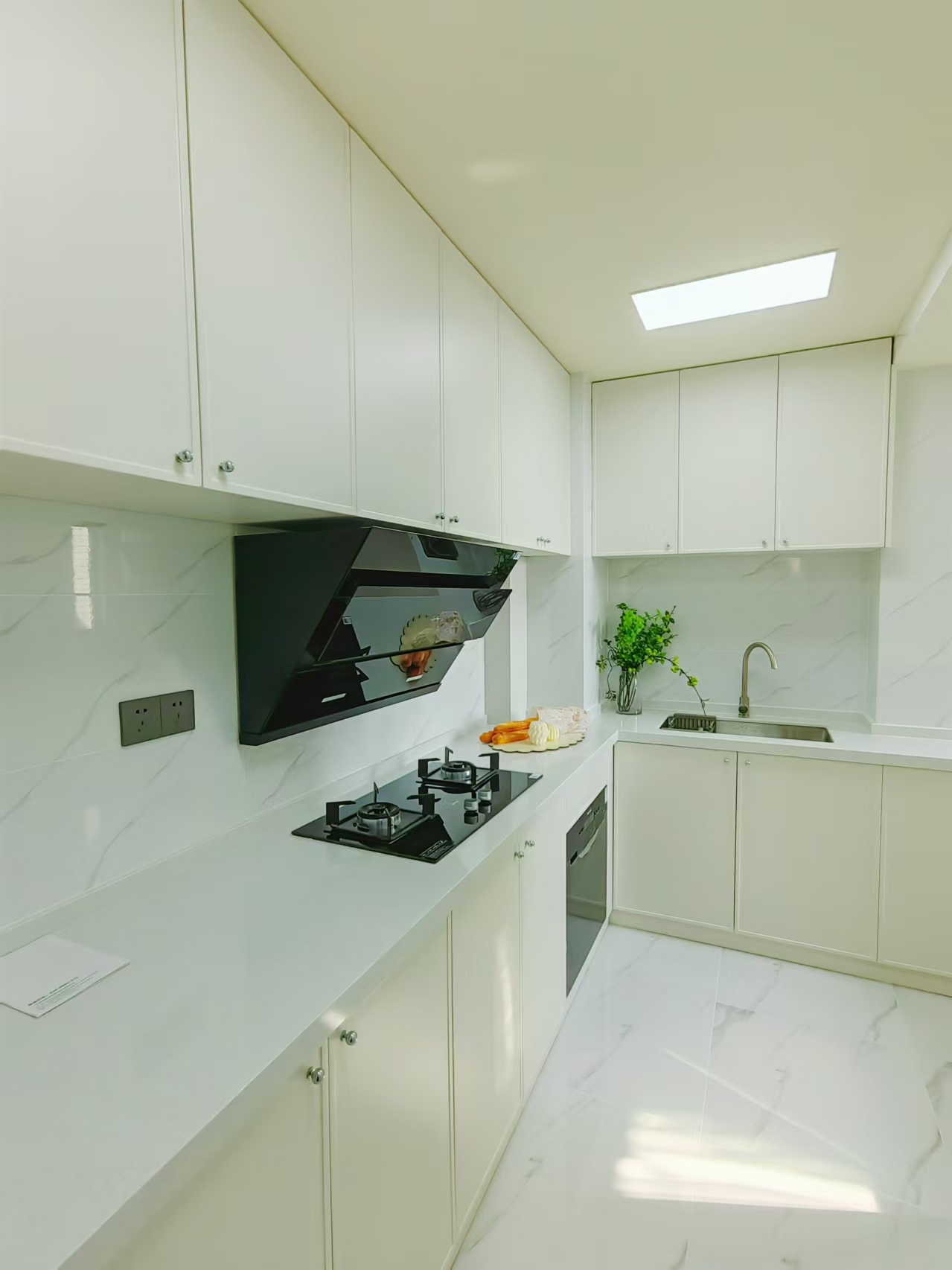 Climate is always comfortable with air conditioning and dedicated heating, essential for Shanghai’s humid winters and warm summers. The renovation emphasizes smart storage and clean, hard-wearing surfaces to make maintenance effortless.