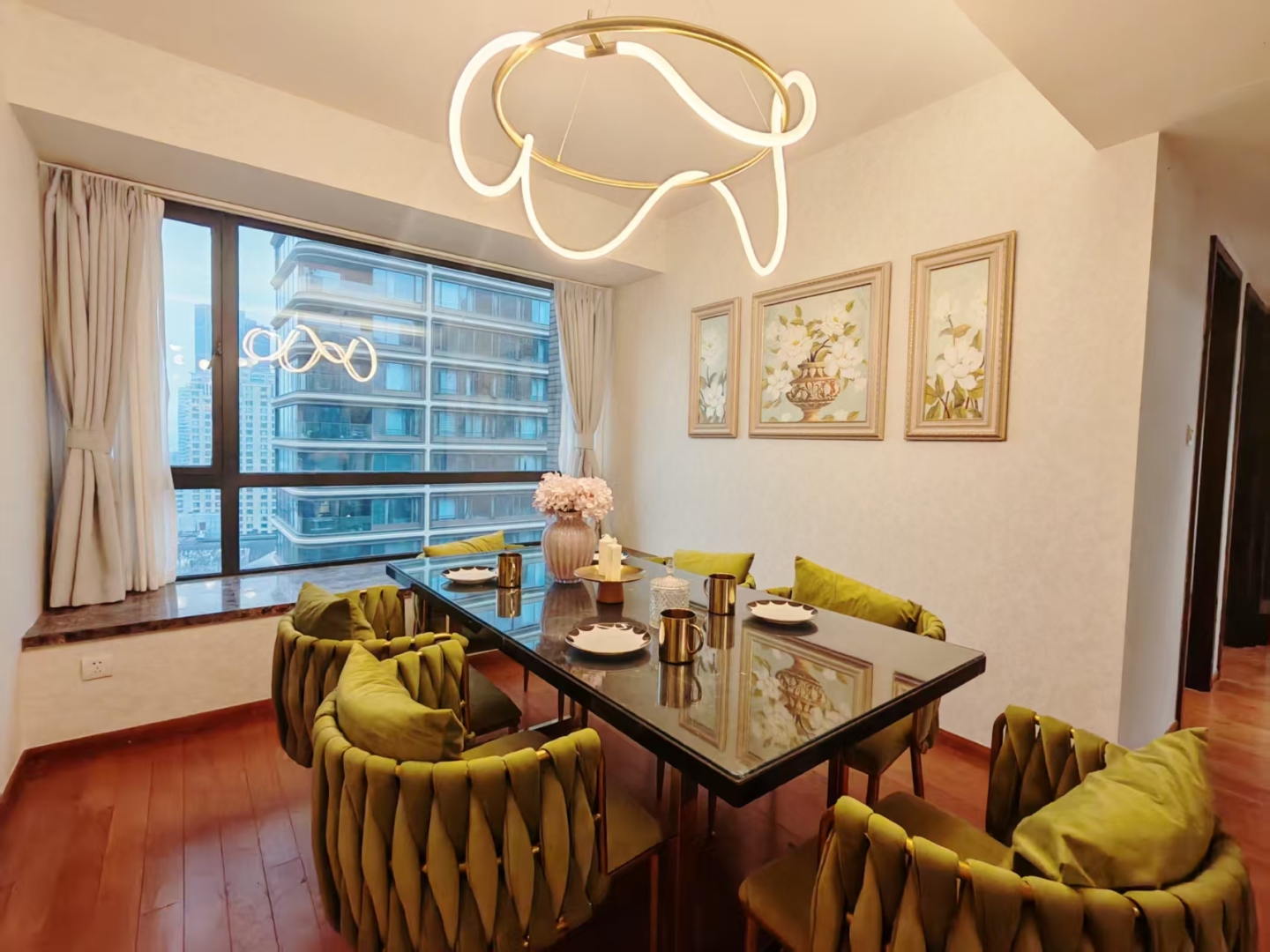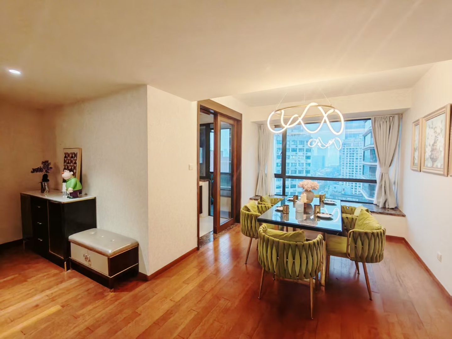 Two additional rooms adapt as a home office, nursery, or guest space, making this apartment in Shanghai work for evolving needs and hybrid work routines.