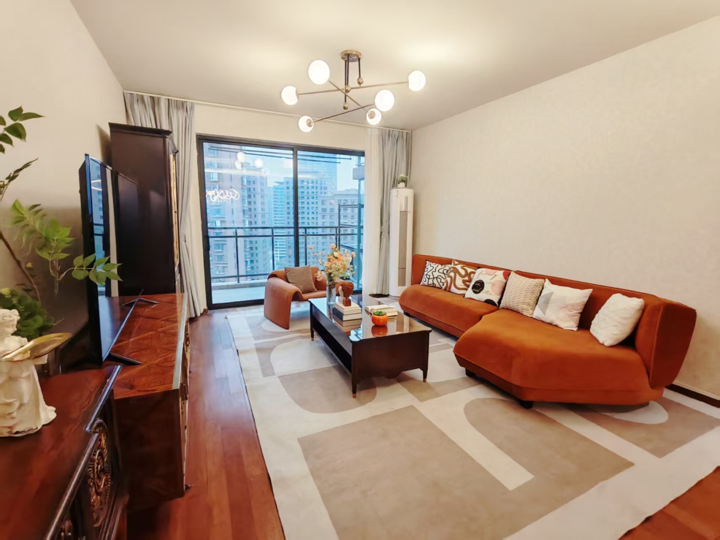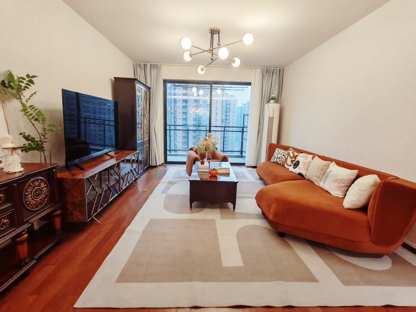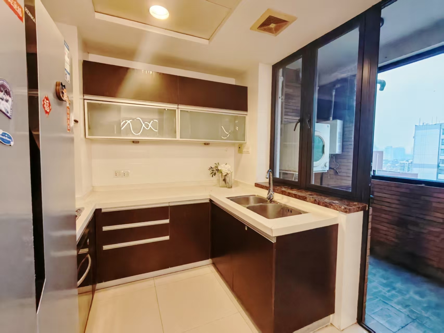 The main living area is inviting and well-proportioned, opening to a private outdoor space for morning coffee, potted herbs, or a quiet read above the city bustle. The kitchen features brand-new appliances and generous storage so weeknight cooking feels easy and weekend entertaining remains effortless. Practical comforts are covered with heating for Shanghai’s cooler months, quality fixtures in both bathrooms, and ample integrated storage throughout.