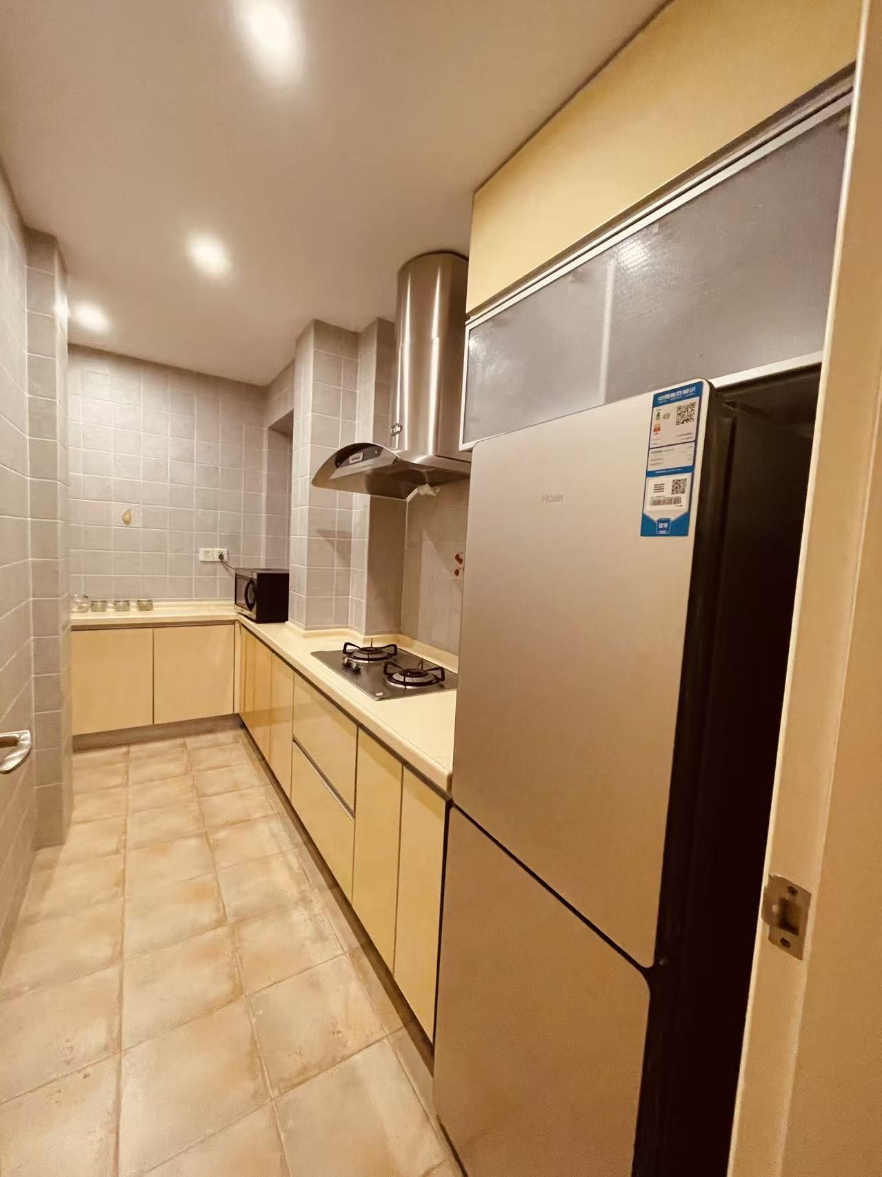 The kitchen is neat and practical for daily cooking, while the bathroom includes a bathtub that is genuinely appreciated in Shanghai for unwinding after a busy day. Air conditioning ensures year-round comfort. The apartment comes fully furnished in a clean, contemporary style, so you can move in with just a suitcase and settle immediately. Surfaces and fittings are in good condition, making upkeep straightforward and stress-free.