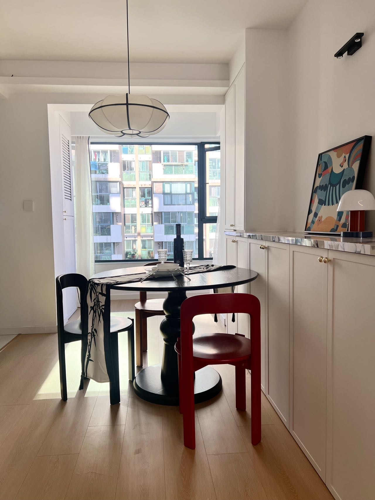 This gorgeous, welcoming 3-bedroom, 2-bathroom apartment in Zhonghuan Huayuan has been thoughtfully refreshed to feel all new, pairing modern comfort with a calm residential setting. The living and dining area is framed by large windows that invite soft natural light throughout the day, creating a warm, convivial atmosphere for relaxing or entertaining. A private balcony extends the living space outdoors, ideal for morning coffee or an evening read while overlooking the compound’s quiet walkways.