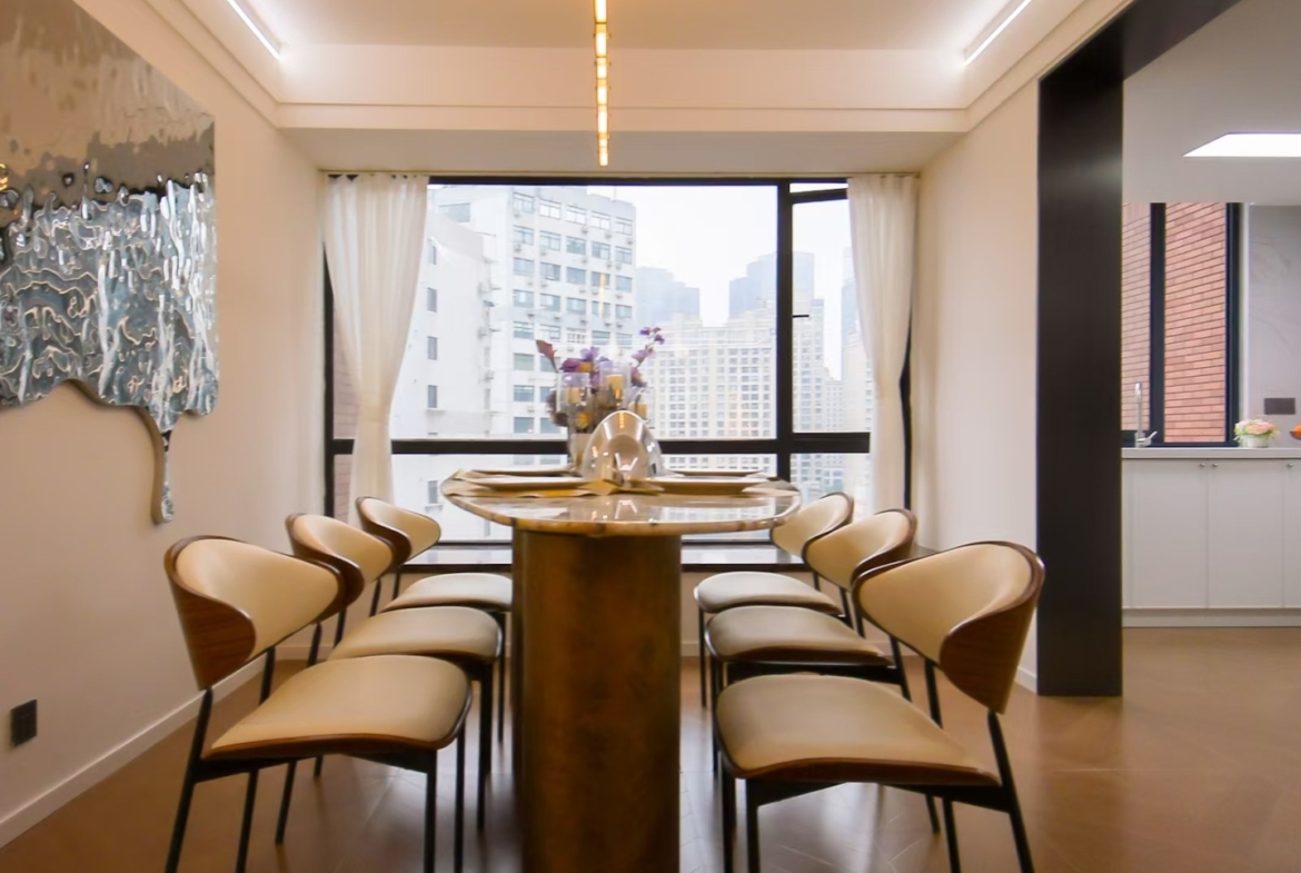 The residence is fully renovated and fully furnished with a modern, cohesive aesthetic—clean lines, durable finishes, and ample built‑in storage that keeps the space uncluttered. Air conditioning and heating ensure year‑round comfort—an essential in Shanghai’s humid summers and crisp winters. The kitchen is designed for real cooking with efficient work zones and quality appliances, supporting everything from quick breakfasts to weekend entertaining.