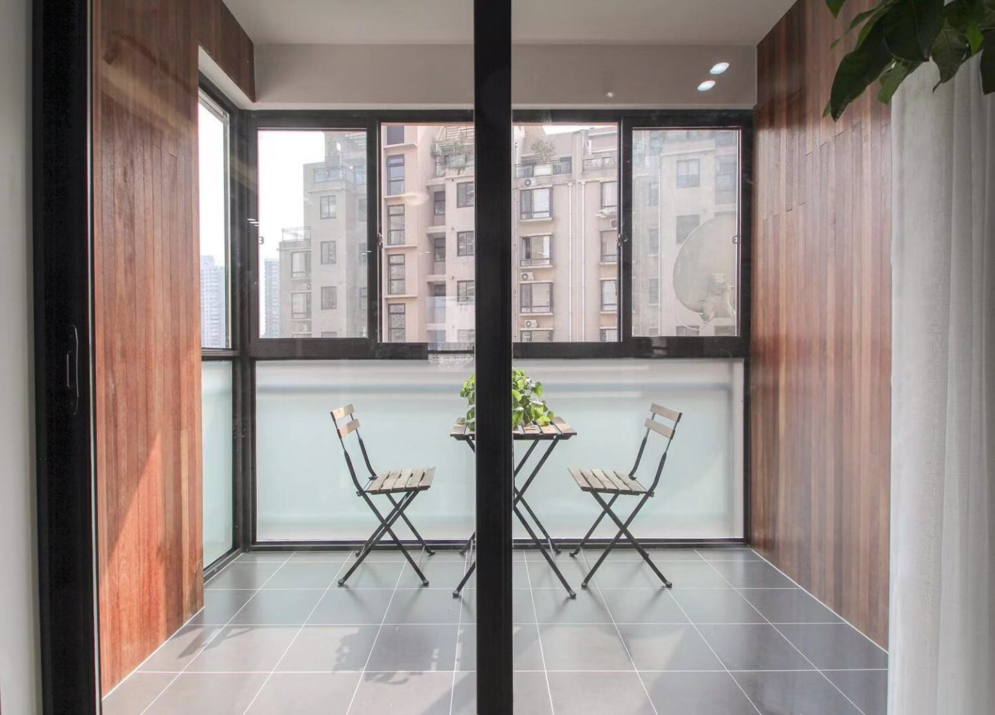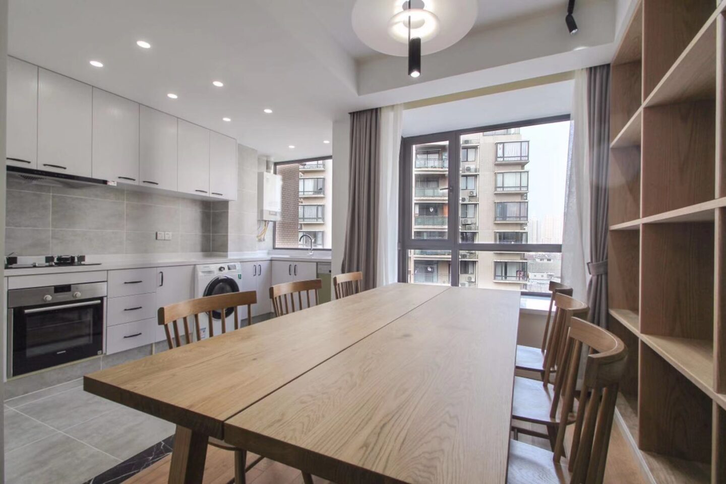 The living area is bright and expansive, seamlessly connected to a private balcony that opens to city views—perfect for morning coffees or unwinding after work. Enjoy year-round comfort thanks to air conditioning and heating systems, while high-speed WiFi supports all your work-from-home or entertainment needs. The kitchen features modern gas appliances, ideal for both quick meals and gourmet dinners. After a long day, relax in the elegant bathtub, a rare luxury in many Shanghai apartments.