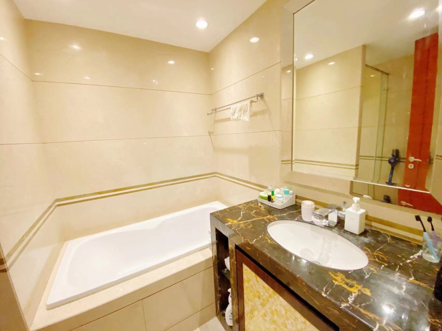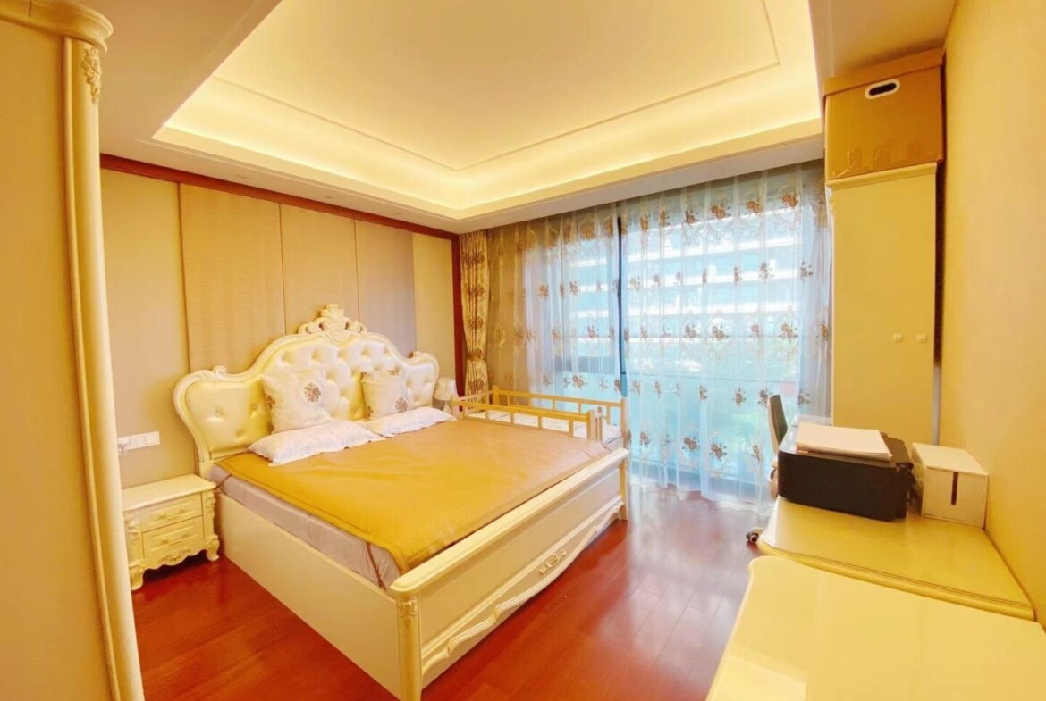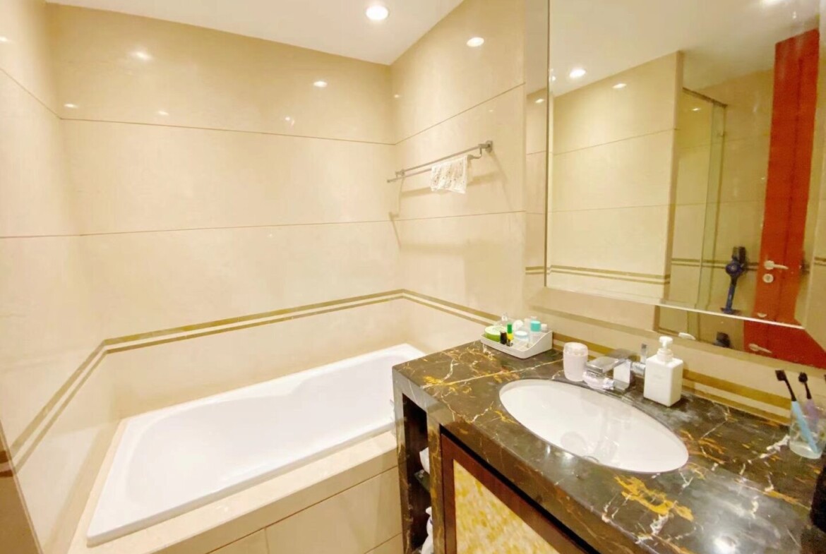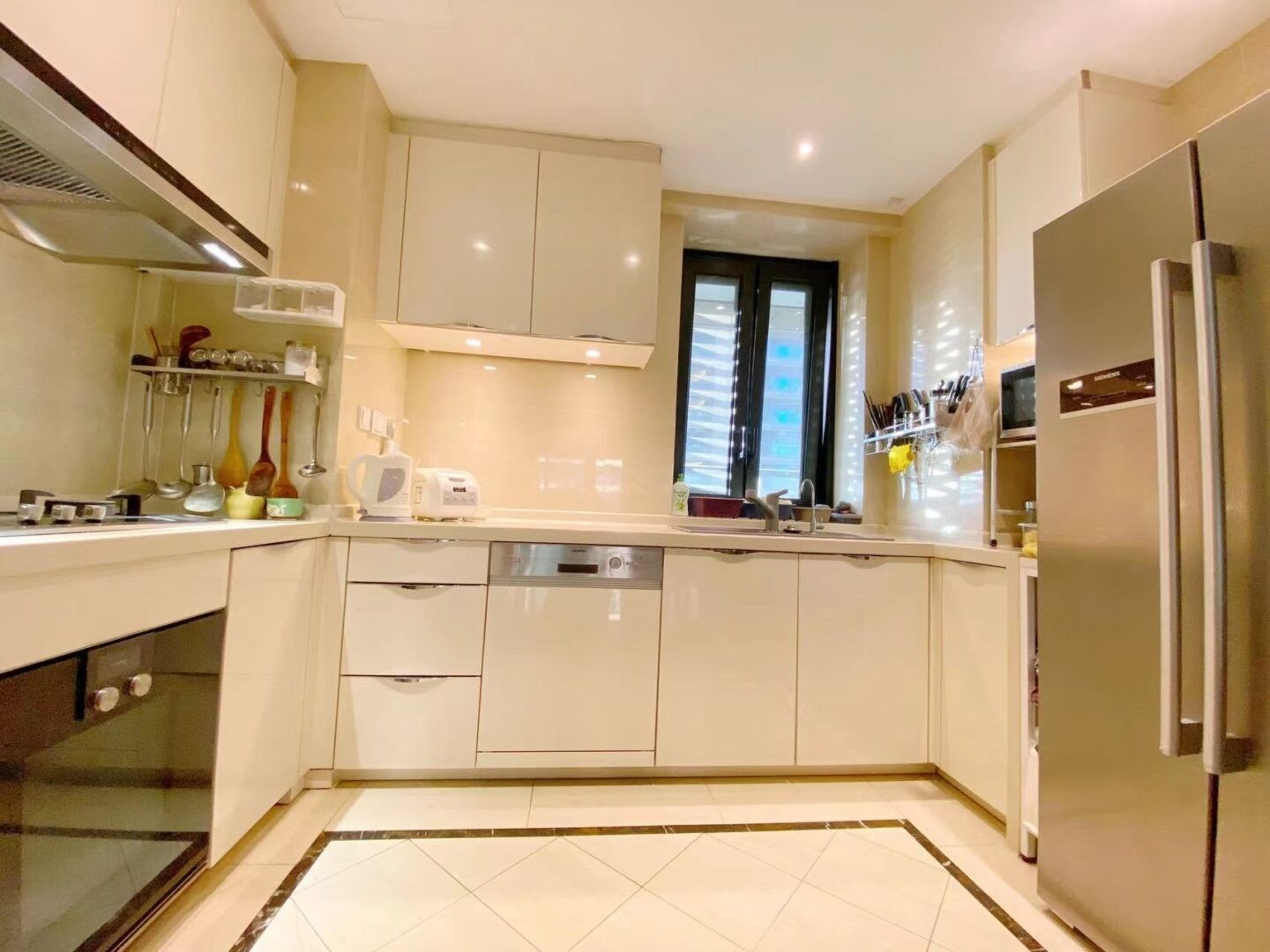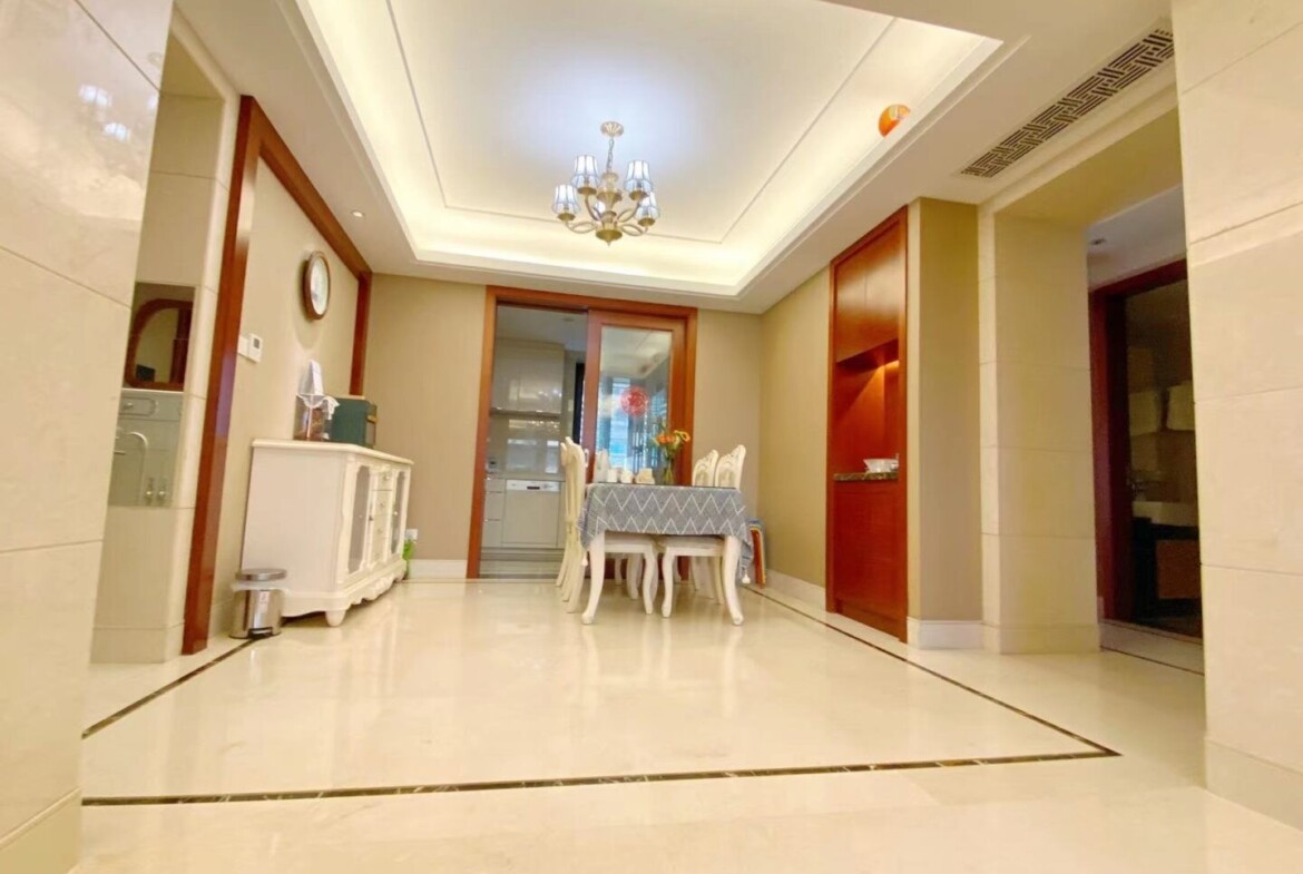 This beautifully fully renovated three-bedroom, two-bathroom modern apartment offers an inviting blend of sophistication and practicality for international residents. Step inside to discover floor-to-ceiling windows that flood the open-plan living area with natural light, creating a welcoming atmosphere perfect for relaxation or entertaining. Each bedroom is thoughtfully designed for optimal privacy and comfort, while the master suite boasts a spacious bathtub—a rare luxury in Shanghai apartments.