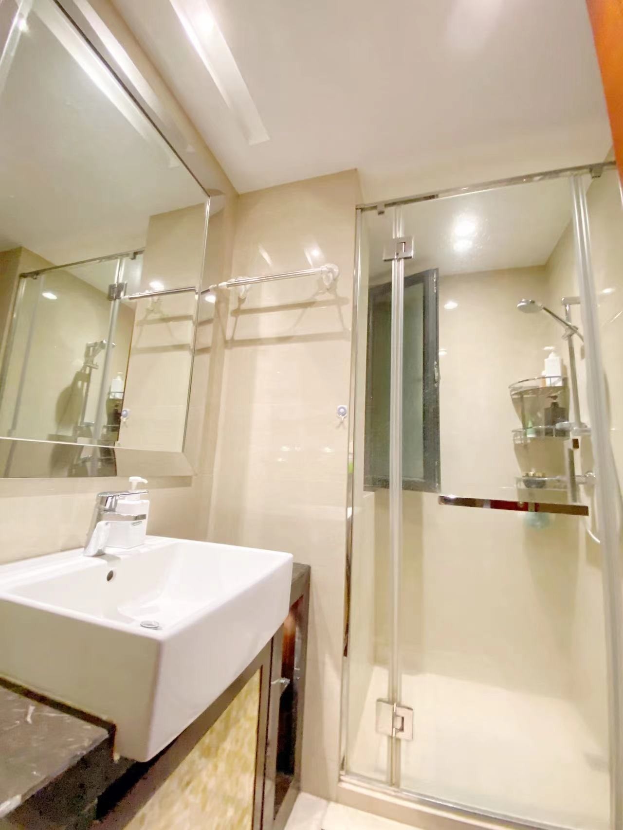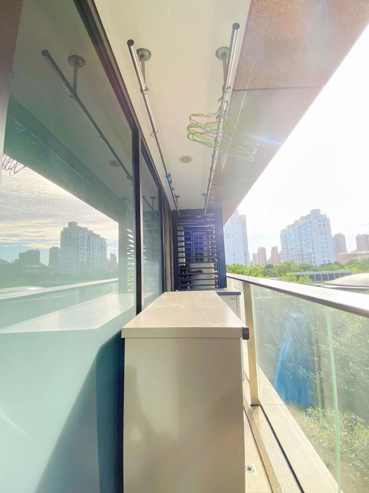 The apartment features a sleek, contemporary kitchen, equipped for everything from casual breakfasts to gourmet dinners. Step out onto your private balcony to enjoy morning coffee or evening sunsets overlooking the landscaped grounds. Air conditioning ensures year-round comfort, while outdoor space invites you to unwind at home. With easy access to the nearby subway, your daily commute and exploration of Shanghai’s vibrant city life are effortlessly convenient.