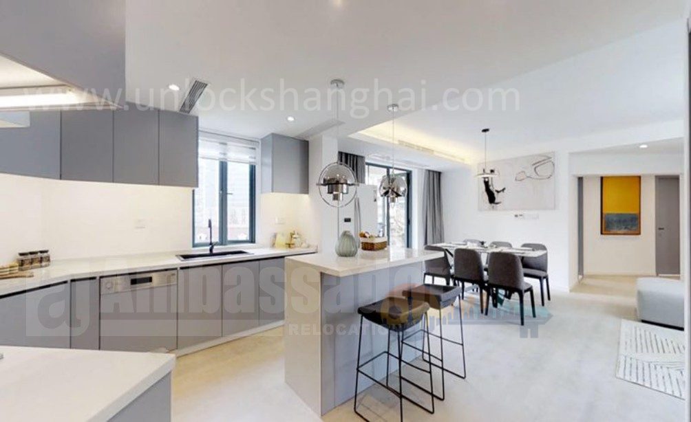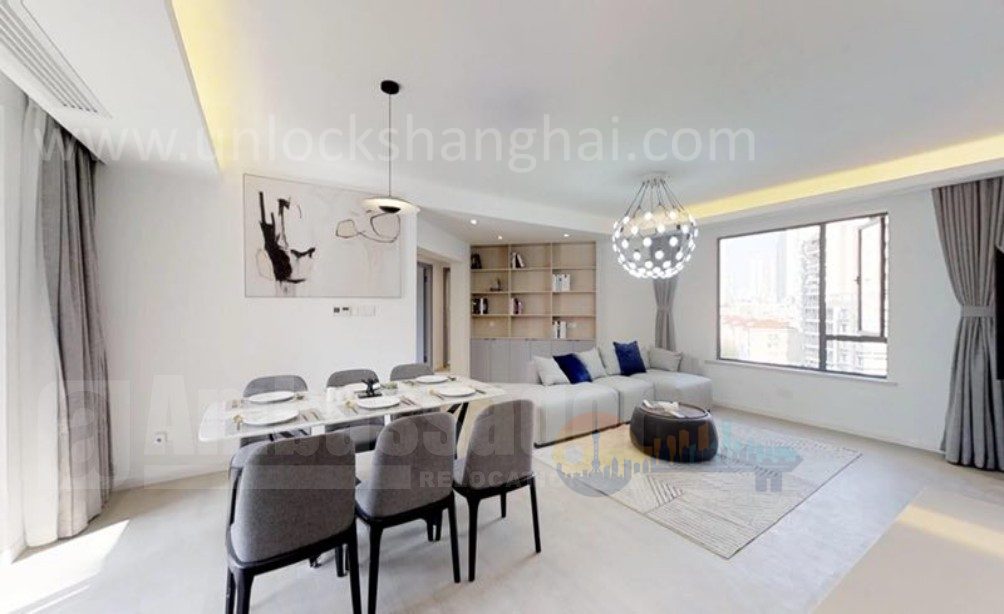 Step into a thoughtfully designed modern apartment boasting four generous bedrooms and two stylish bathrooms – an ideal retreat for families or professionals seeking both space and serenity. This home is fully renovated for its first rental, ensuring every detail, from gleaming floors to premium fixtures, is pristine and up-to-date. Enjoy year-round comfort with central air conditioning and efficient heating, perfect for Shanghai’s shifting seasons. The expansive layout is complemented by an inviting outdoor space, where you can unwind with morning coffee or entertain friends against the city skyline. Each room is bathed in natural light thanks to smart window positioning, creating a warm, welcoming atmosphere that instantly feels like home. For those who appreciate both modern aesthetics and functional design, this apartment delivers on every front.