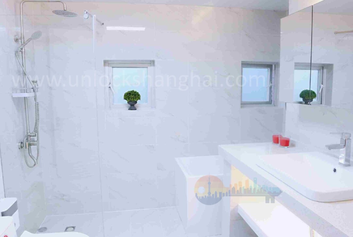 The layout emphasizes both privacy and communal living, with generously sized bedrooms and an open-plan living area ideal for hosting friends or relaxing with family. Indulge in the luxury of a bathtub—a rare find in Shanghai apartments—perfect for unwinding after a busy day. Central air conditioning and heating ensure year-round comfort, while high-speed WiFi keeps you seamlessly connected.