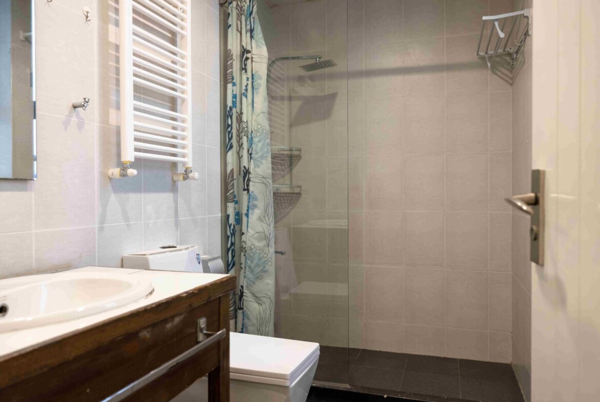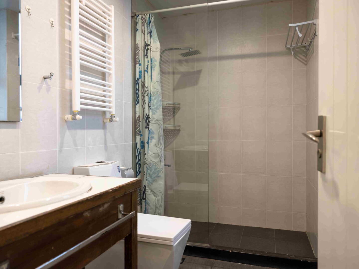 Every detail has been thoughtfully considered, from the modern air conditioning system ensuring year-round comfort to the rare inclusion of a bathtub—a welcome luxury after busy days. The open-plan living areas flow seamlessly onto private outdoor space, ideal for morning coffee or evening relaxation. A contemporary kitchen equipped with gas cooking invites culinary creativity, while the apartment’s elevated position ensures tranquility high above the bustling streets below.
