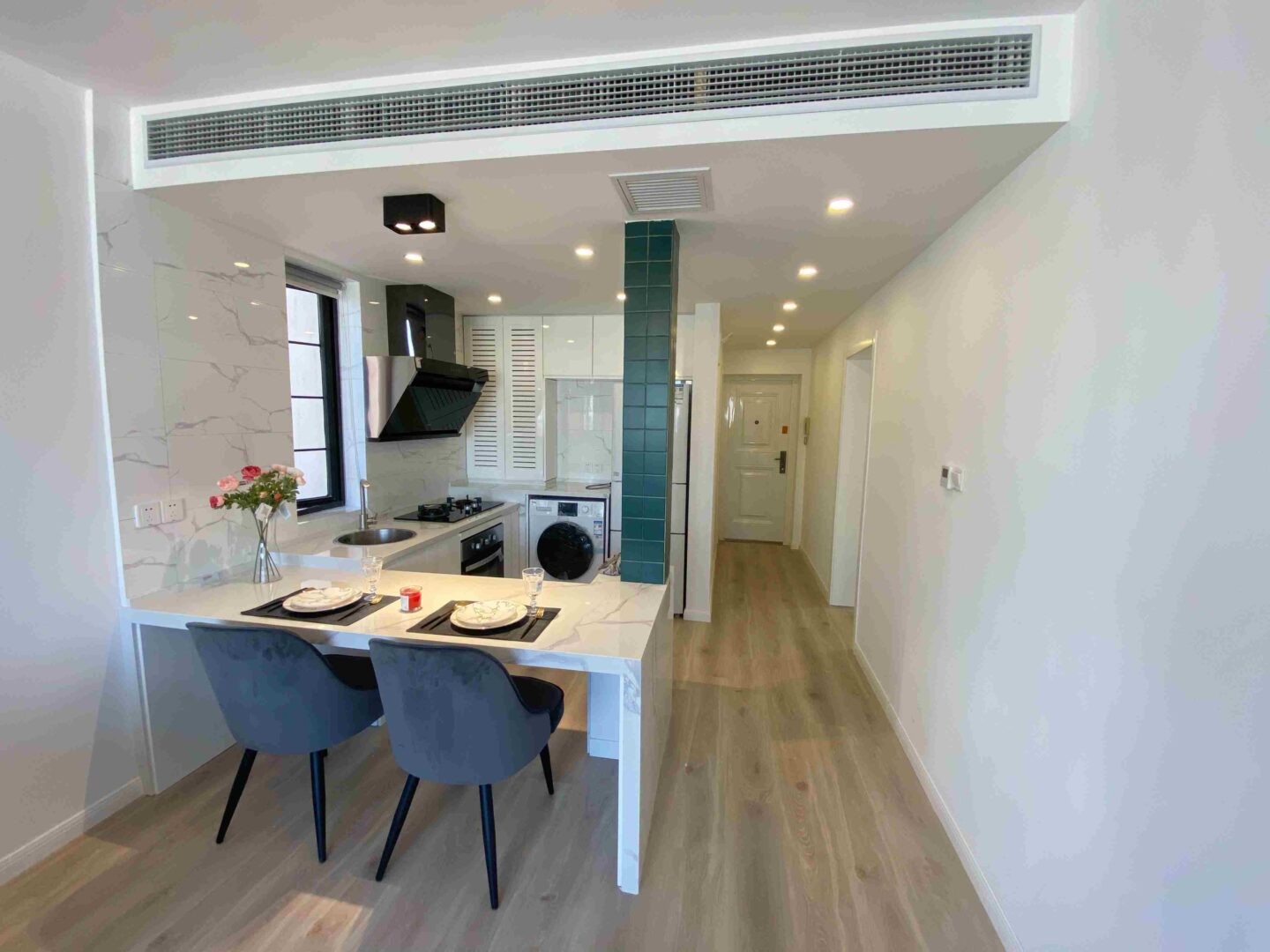 Step into this beautifully renovated, first-rental modern apartment situated on the iconic Wulumuqi Zhong Road. Designed with discerning expats in mind, the home features central air conditioning and an advanced heating system, ensuring comfort throughout Shanghai’s changing seasons. Every inch of the interiors speaks of thoughtful craftsmanship — from sleek built-in storage to high-quality fixtures.
