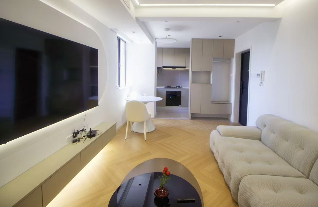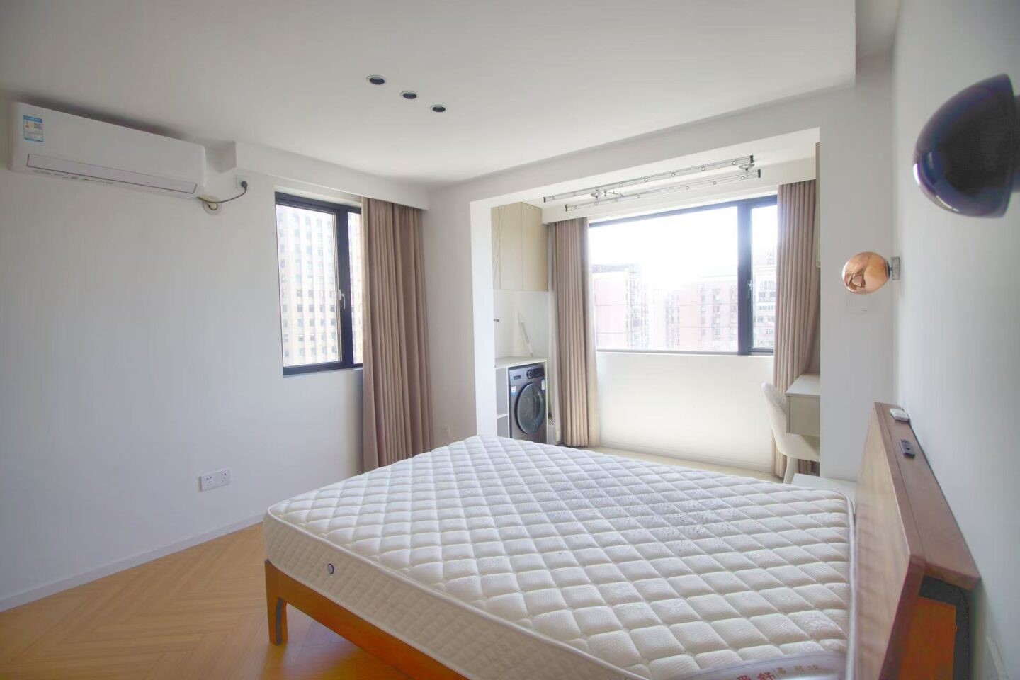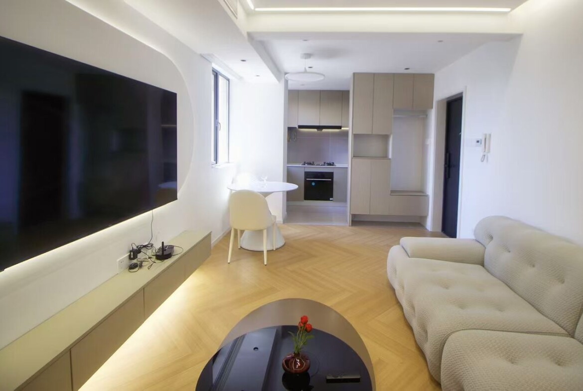 This thoughtfully renovated 2-bedroom, 1-bathroom modern apartment offers an inviting sanctuary amidst the vibrant pulse of Shanghai. Step inside to discover a bright, open-plan living space, meticulously designed with contemporary finishes. Full air conditioning and efficient heating ensure year-round comfort, making it easy to settle in regardless of the season.