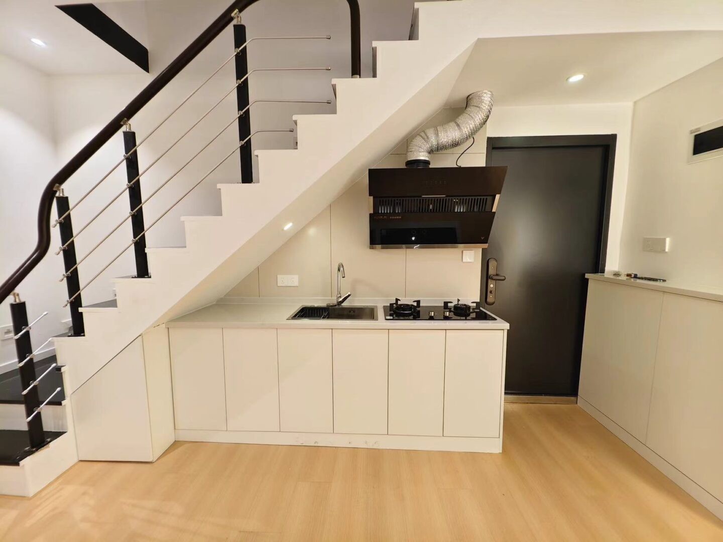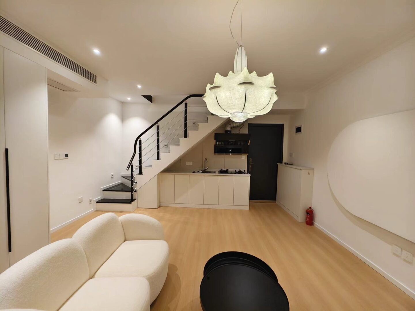 Experience modern living in this beautifully fully renovated 60 sqm duplex Shanghai Lane House for rent. This property features a bright and airy open-plan layout accentuated by large windows, maximizing natural light. The minimalist design includes high-quality finishes, with sleek hardwood floors and contemporary furniture that creates a chic urban vibe. The stylish staircase leads to a cozy bedroom, offering a perfect retreat. Enjoy the convenience of in-unit air conditioning and proximity to the subway.