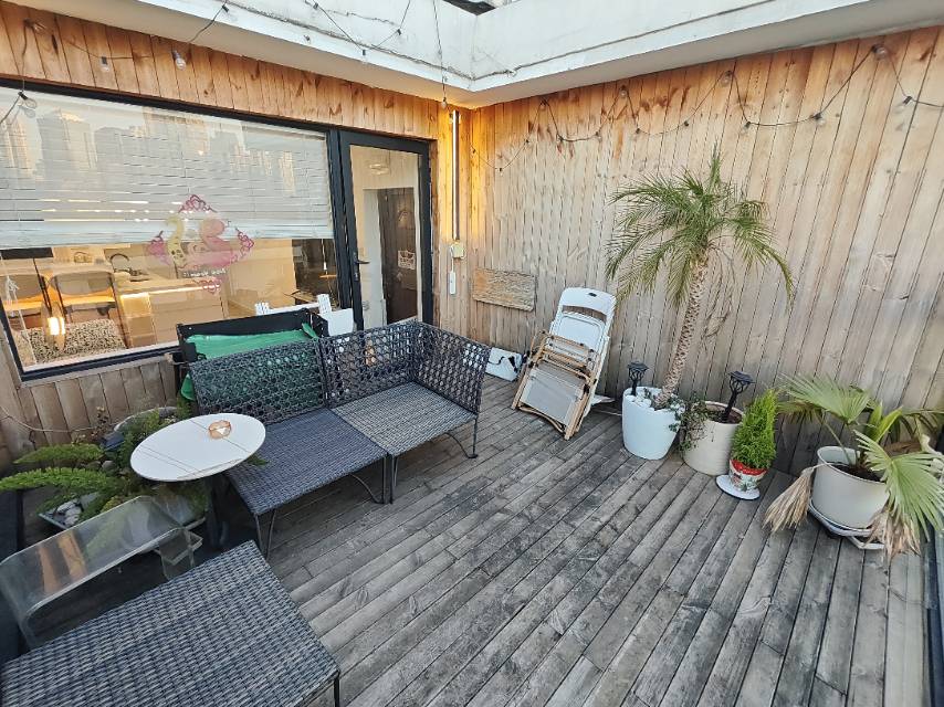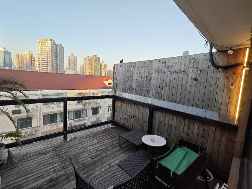 Sunlit 1-Bed Shanghai Apartment for Rent with Wood-Deck Terrace and Skyline Views