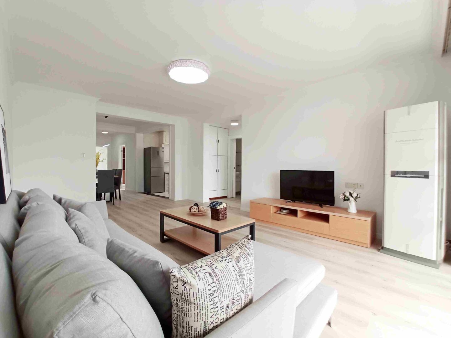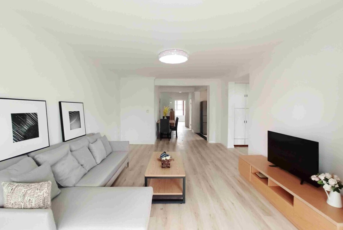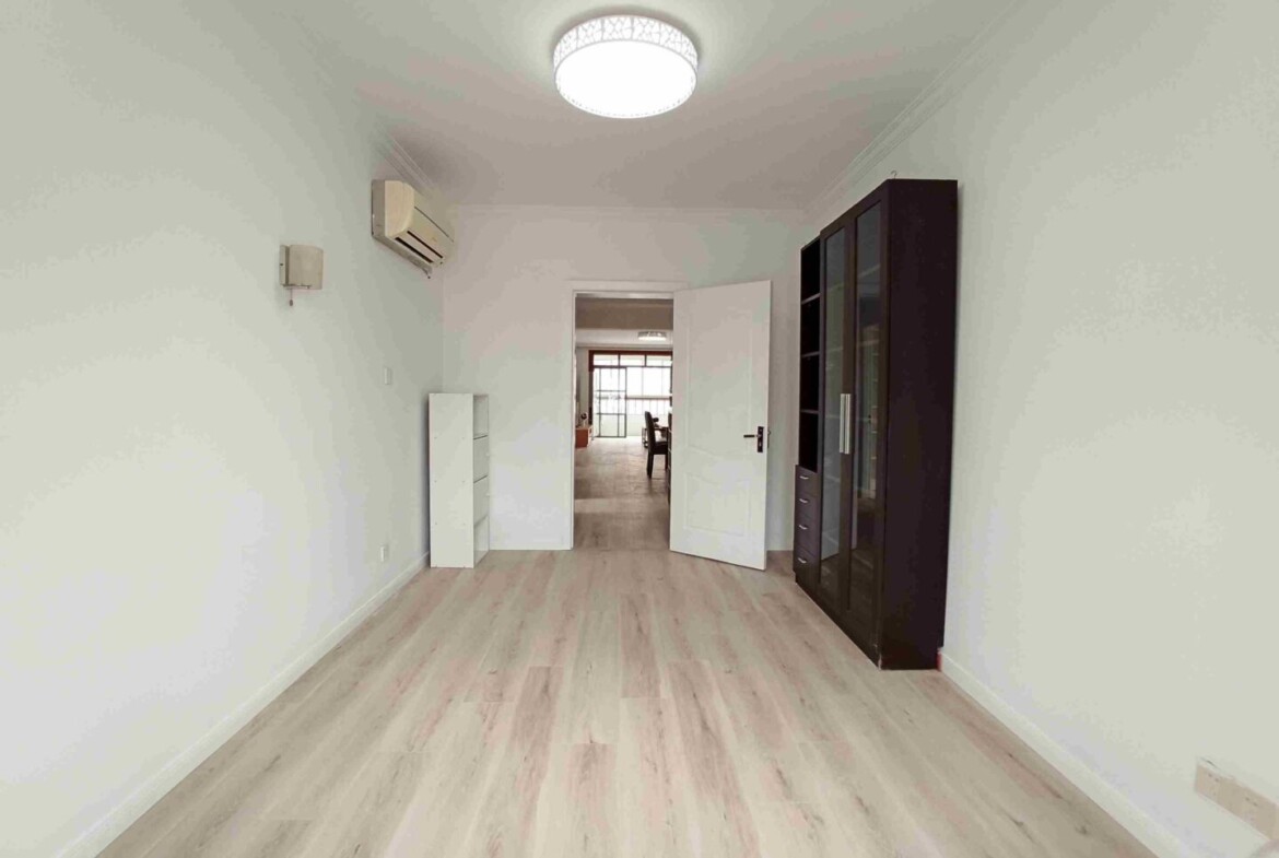 This inviting 3-bedroom, 1-bathroom apartment in Wanping South Garden delivers a calm, comfortable base in one of Xuhui‘s most connected pockets. A generous living and dining area anchors the home, framed by floor-to-ceiling windows that draw in soft southern light and overlook the compound’s internal greenery. The recent full renovation introduces a clean, contemporary palette and quality finishes, creating a space that feels fresh without being fussy.