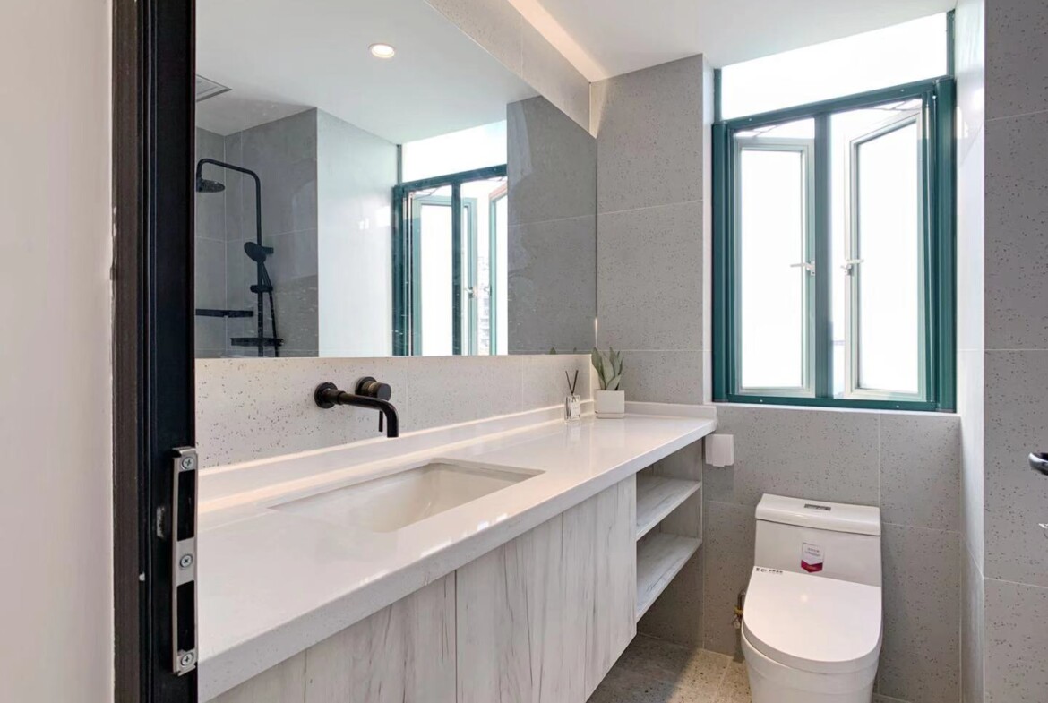 This sunlit 3-bedroom, 2-bathroom apartment at St. Johnson has been fully renovated and is offered as a first rental, ensuring every surface and fitting feels fresh and ready for your move-in. A minimalist palette and clean architectural lines form a calm backdrop for your own style, while floor-to-ceiling windows draw in soft natural light and frame leafy compound views. The open-plan living and dining area flows to a practical outdoor space ideal for morning coffee or an evening wind-down above the landscaped courtyards.