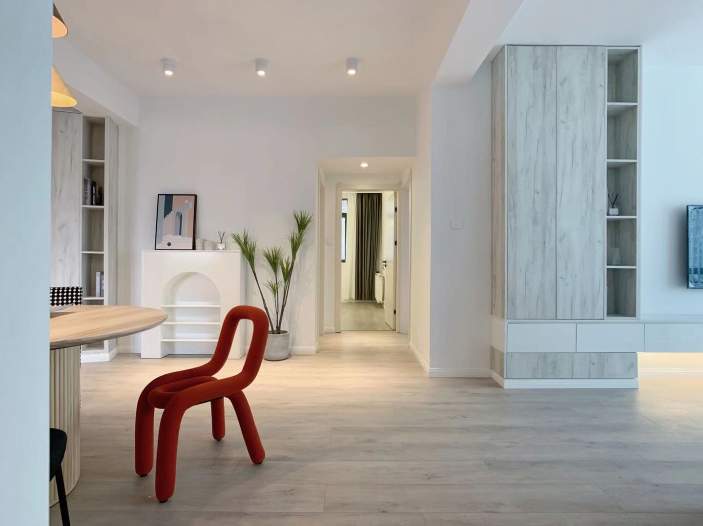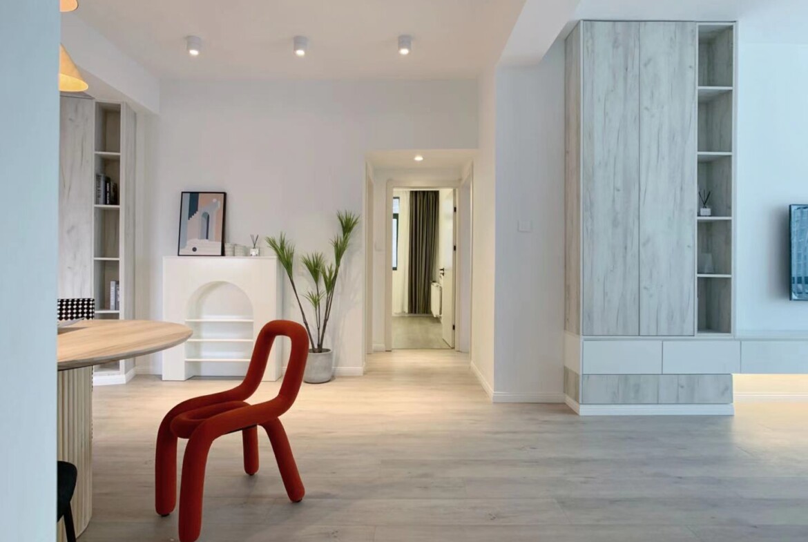 Set back from Changning Road, the home benefits from the community’s greenery and quiet pathways, while remaining near the subway for effortless cross-city access. The result is a modern, inviting refuge that balances privacy with convenience, and minimalist design with everyday practicality.
