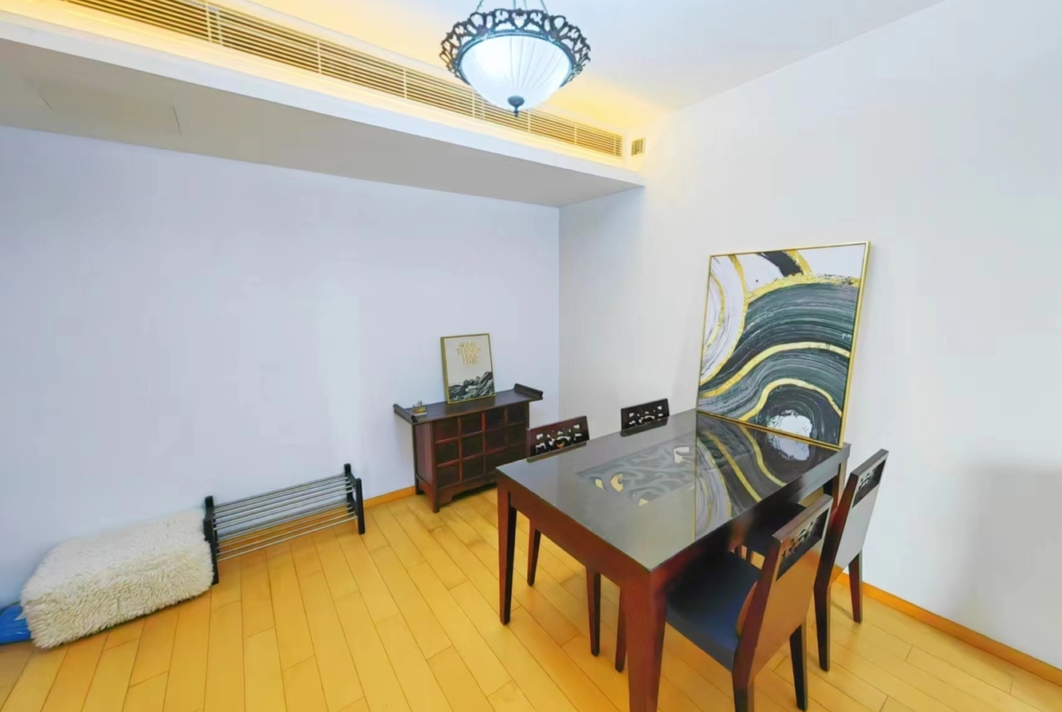 Daily living is made easy by the compound’s outdoor space and landscaped paths, so you can step outside without leaving home. The address sits near the subway, giving you quick access to the city’s key business hubs, entertainment districts, and international dining. Altogether, this home pairs calm interiors with an excellent city base, ideal for a single professional or a couple looking to settle comfortably in Huangpu.