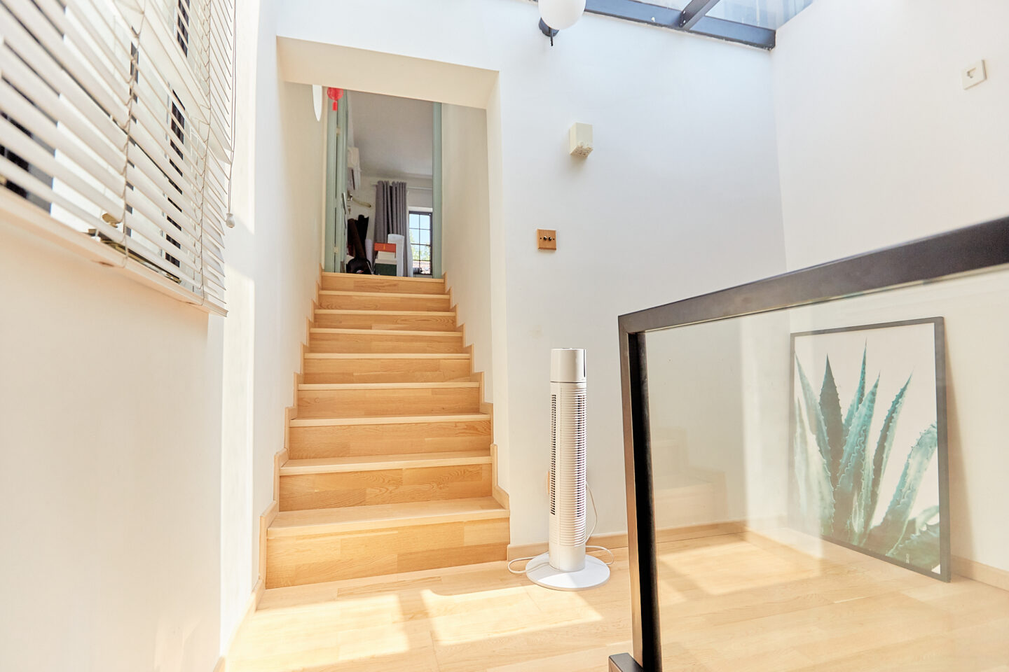 Outdoor space that matters: a ground-floor patio garden for alfresco dining and a balcony perfect for work or unwinding, both unusual privileges in the city center. Flexible three-level layout: two true bedrooms plus a sunlit top-floor landing that adapts to home office, hobby studio or guest nook as your needs evolve.