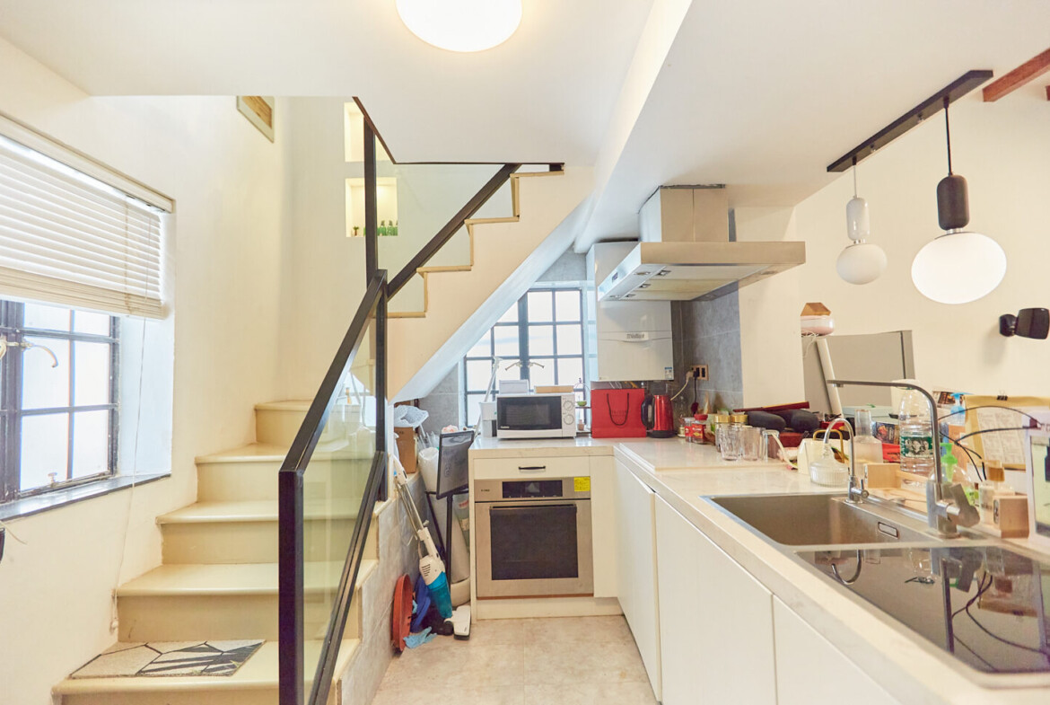 Jing’an Yuyuan Road Lane House Studio with Mezzanine, Balcony, and Exposed Beams