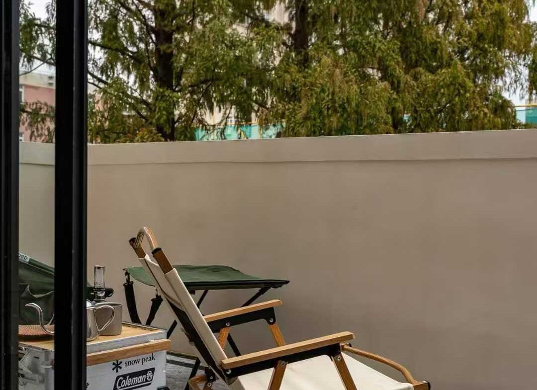 Outdoor moment without leaving home: The private balcony brings in sunlight and green views, perfect for a herb planter, a compact bistro set, or a quiet call between meetings.