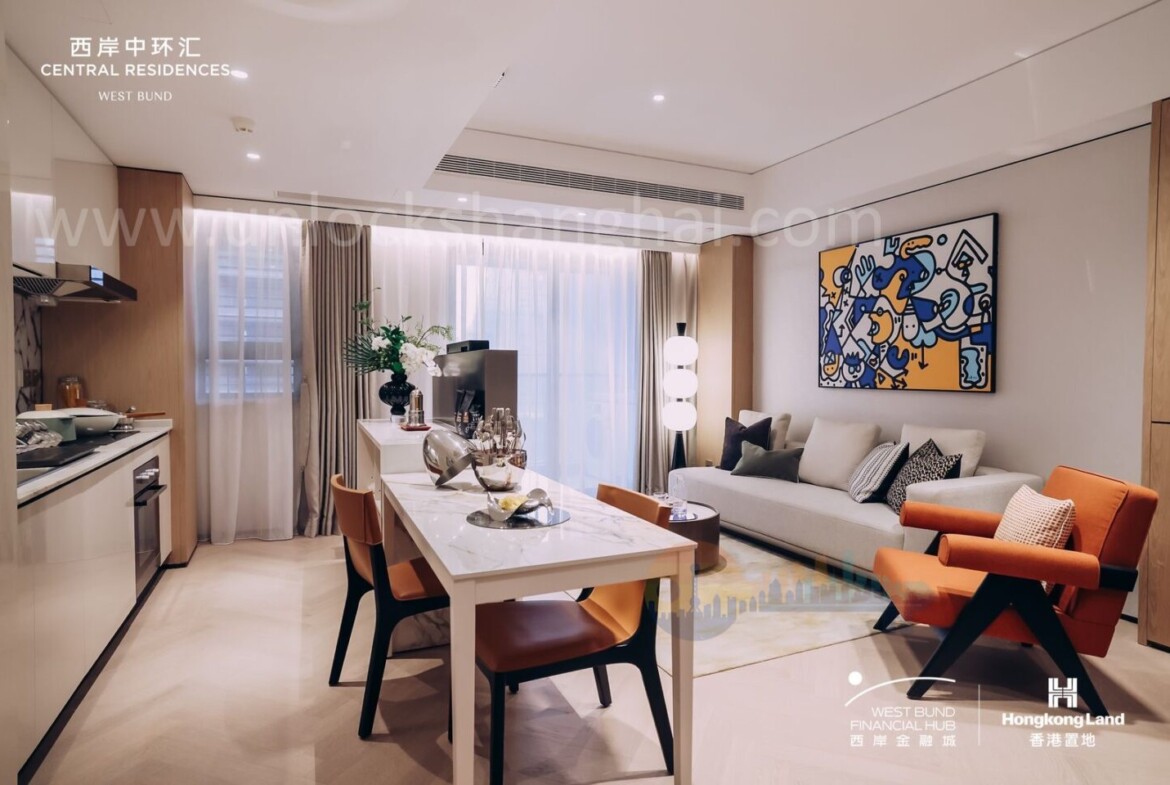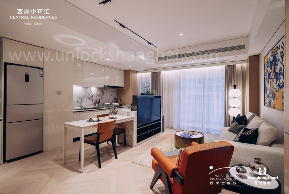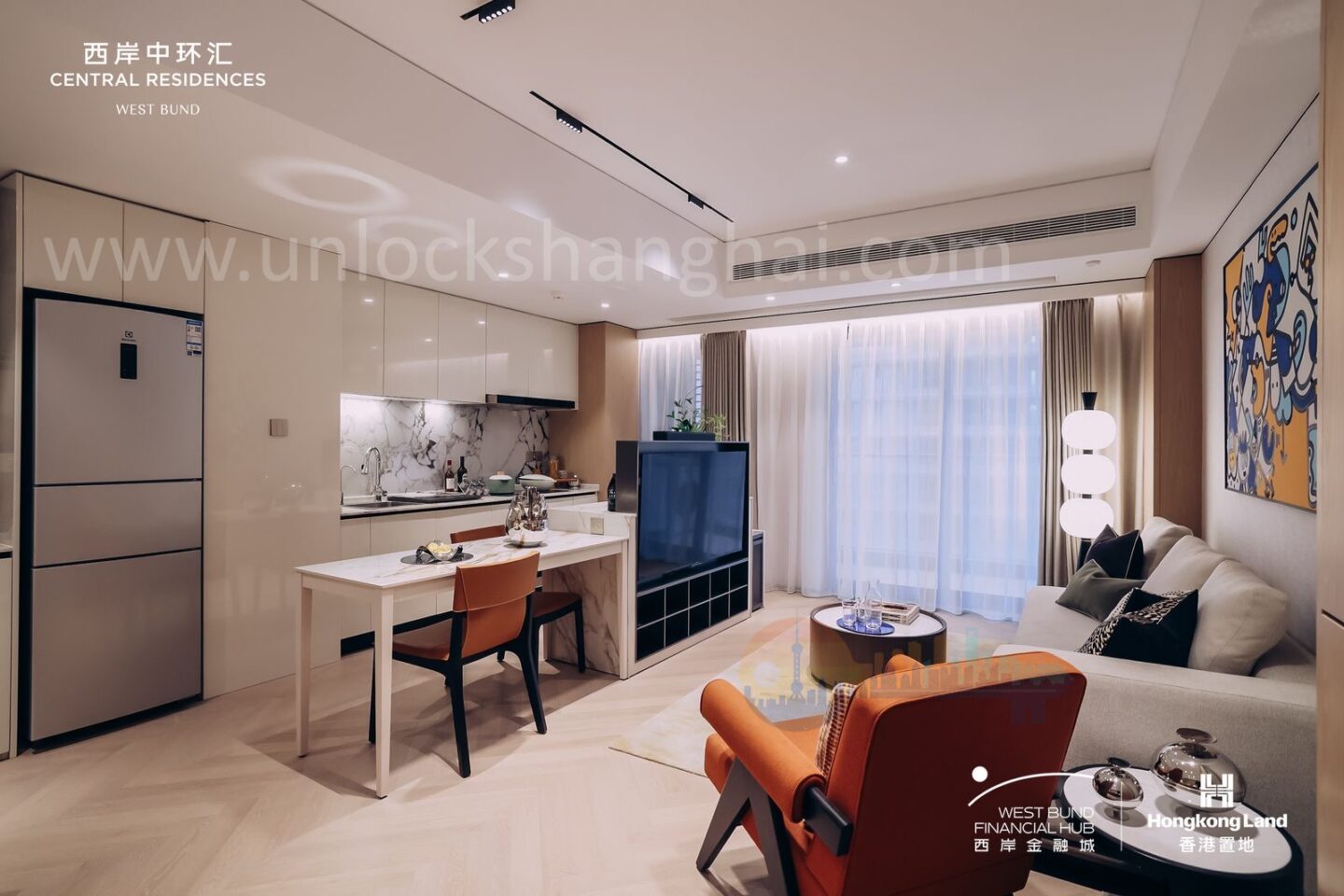 This first rental one-bedroom at West Bund Central Residences is tailored for an effortless Shanghai landing. Freshly and fully renovated, it pairs clean-lined design with practical details that elevate daily living. The open-plan living and dining area flows onto a private balcony, giving you a calm spot for morning coffee or an evening wind-down above the city rhythm. A sleek kitchenette anchors the space with modern cabinetry and quality appliances, while thoughtful storage keeps the footprint clutter-free.