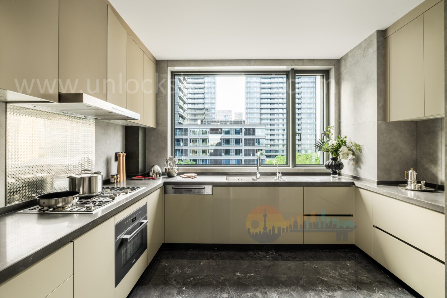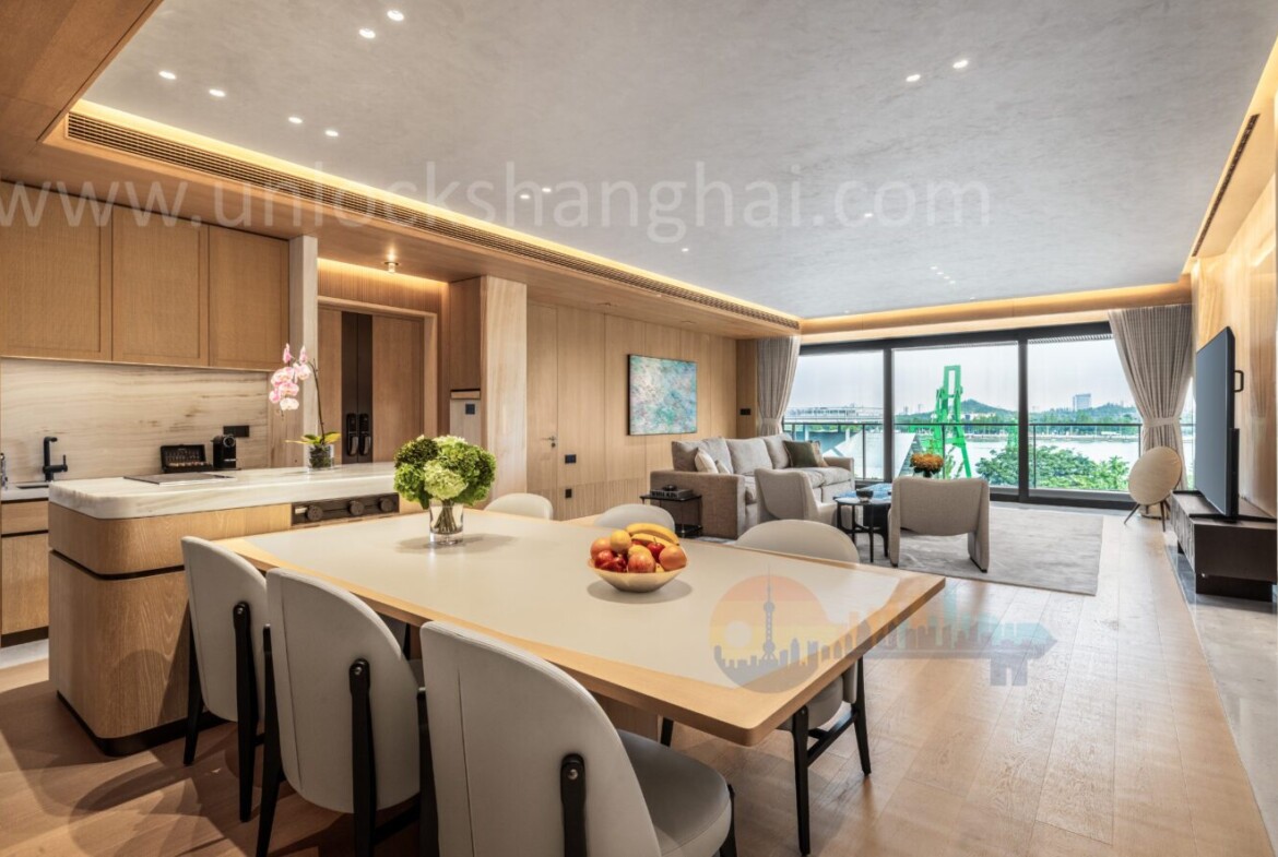 This first-rental 4-bedroom, 3-bathroom home at West Bund Central Residences is tailored for international lifestyles that require comfort, quiet, and effortless functionality. Floor-to-ceiling windows bring in generous natural light that lifts the living and dining areas throughout the day, while central heating and air conditioning ensure year-round comfort through Shanghai’s humid summers and crisp winters. The layout is intuitively zoned so you can separate bedrooms from entertaining spaces, making it easy to host dinners or create a calm home office.