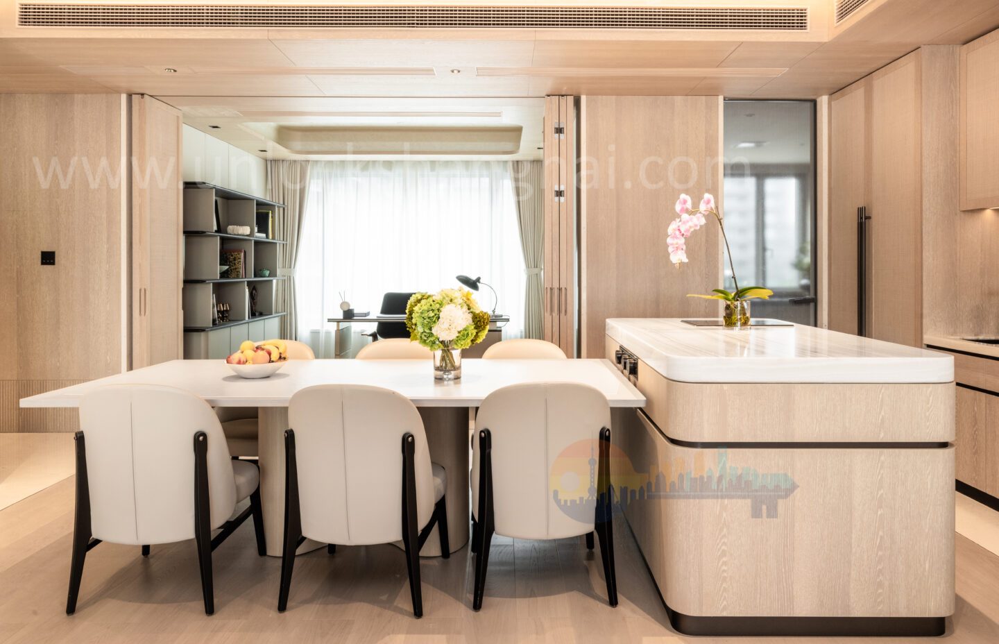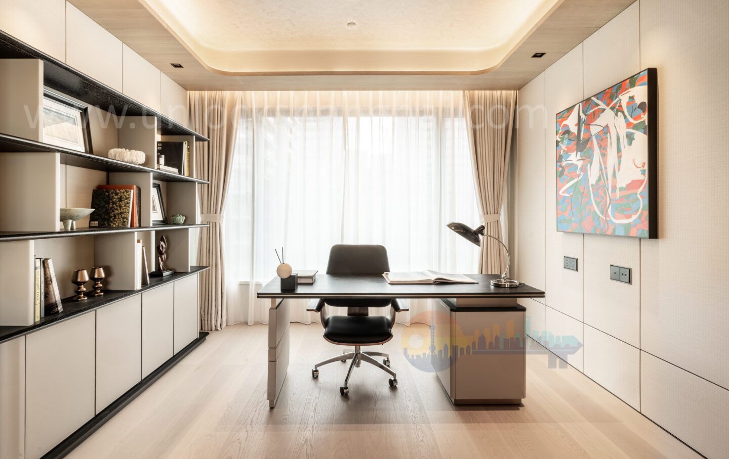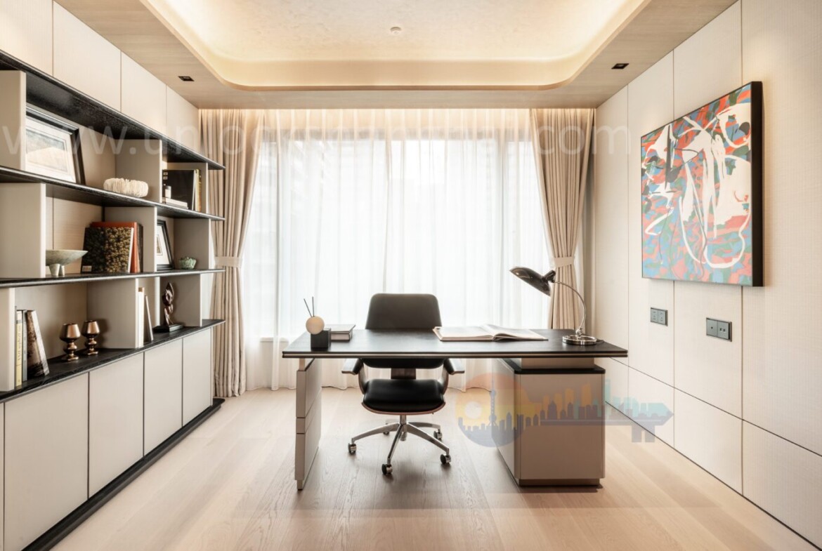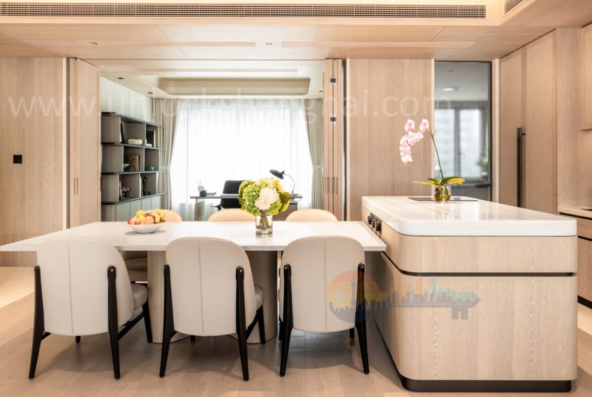 With four bedrooms and three bathrooms, the home supports a range of needs: a nursery plus guest room, two children’s rooms, or a dedicated study and creative studio. The result is a polished, flexible base in Xuhui that feels immediately livable, lock-and-go practical, and quietly luxurious.