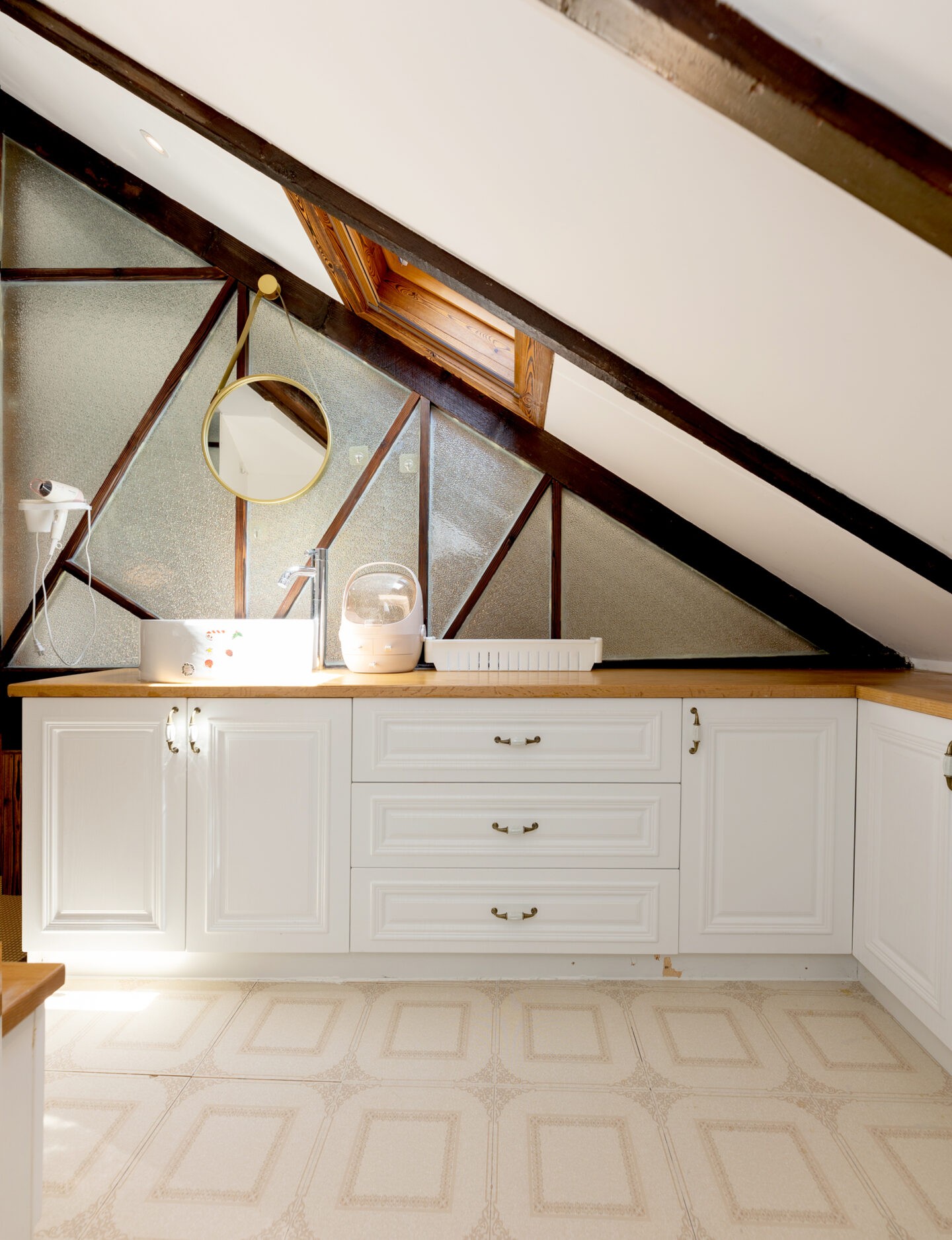 Space that works hard and feels good: The duplex plan with an open loft creates natural zones for living, working, and resting, a rare find in lane houses. The top-floor position adds privacy and soft, all-day light, complemented by a calming outlook over historic rooftops.