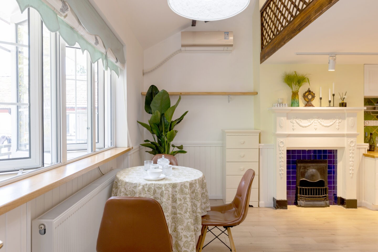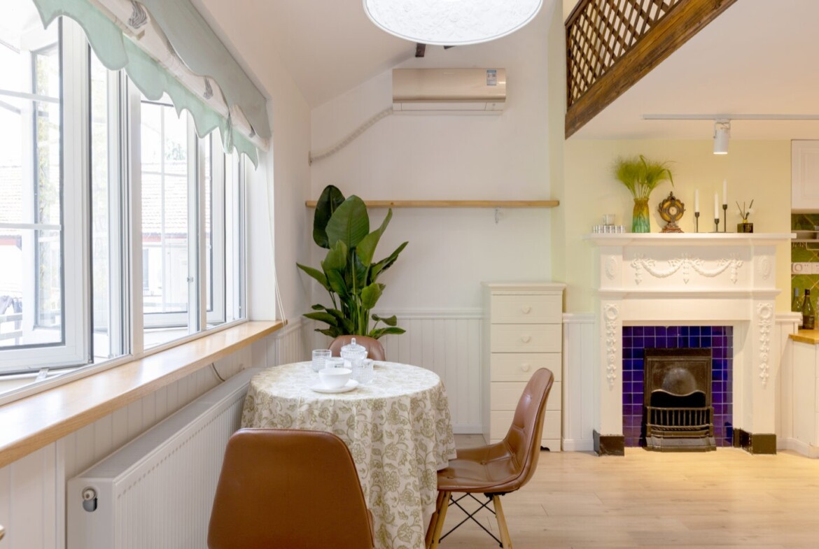 Modern comfort within heritage walls: A first rental after a full renovation means fresh finishes and reliable systems. The bathtub is a true luxury in Shanghai, and the fireplace adds a cozy focal point for quiet evenings. Heating and air conditioning ensure year-round comfort on both levels.