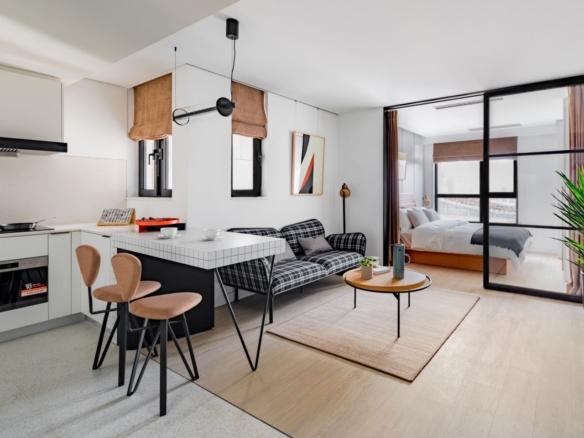 Sunlit 1-Bed Shanghai Apartment for Rent with Wood-Deck Terrace and Skyline Views